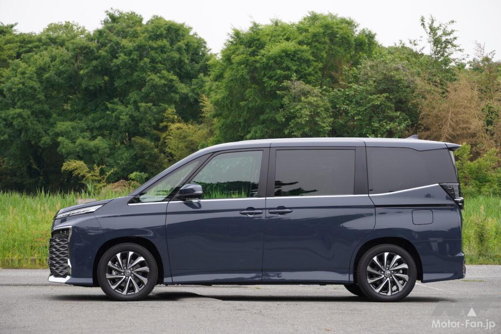 三代目の長いライフを終えて、今年2022年に四代目が登場した。スタイリングはさらに洗練され堂々たる押し出し感も。ボディサイズは、全車4695mm×1730mmだ。これまでは5ナンバーのベースボディがある上で、ワイドフェンダーやバンパー、エアロパーツで上級グレードをこしらえていたが、全車が1730mmとなったことで、初めて、5ナンバーのノア/ヴォークシーが消滅したのである。エアロで各幅していないぶん、四代目ノア/ヴォクシーは、実質的な室内幅が広がるという恩恵を受けている。