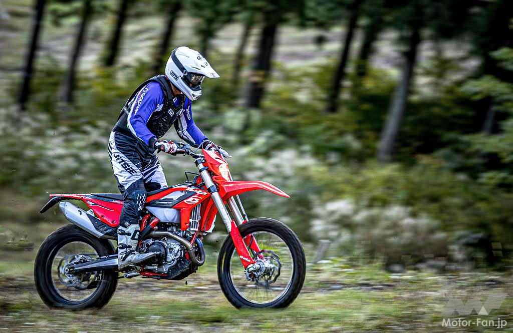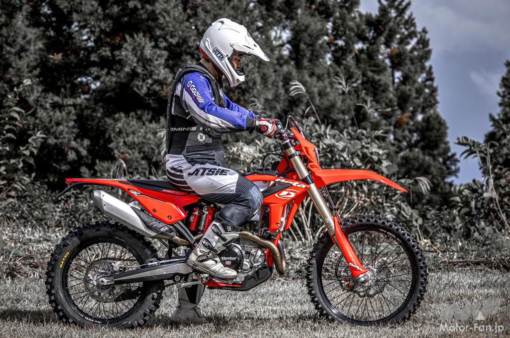 この390、私的には非常にお気に入りだ。エンジン回転を上げないでも楽しく走れ、それでいて速く、速度を出せないセクションでも神経質にならずに取り回せたから。いや~、ベータのエンデューロマシンの仕上がりは高い次元にあることが良く理解出来た今回の試乗でした。