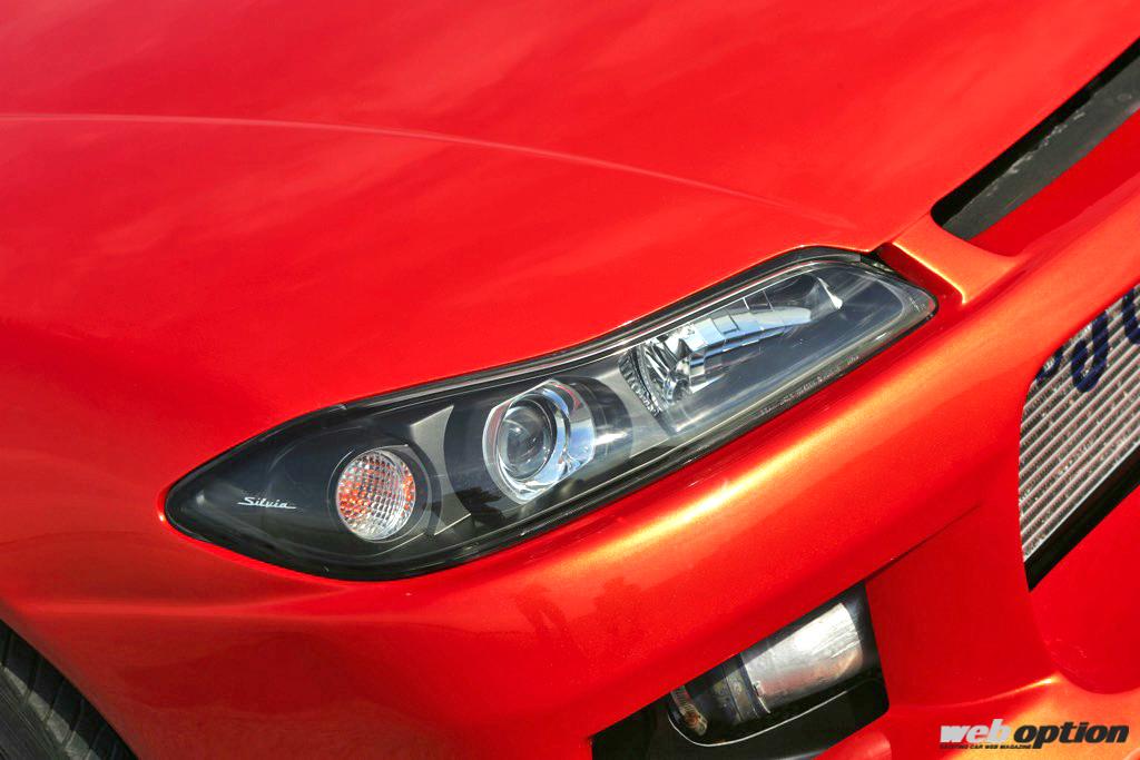 「チルトボンネットよりも、もっとインパクトのあるものを作りたかった。で、偶然フェラーリF40がヘッドライトやバンパーごとチルトするところを見てしまって。チルトカウルって、開けてクルマを停めているだけでも絵になるし、これをS14で再現できないかって思ったんです」とはオーナー。