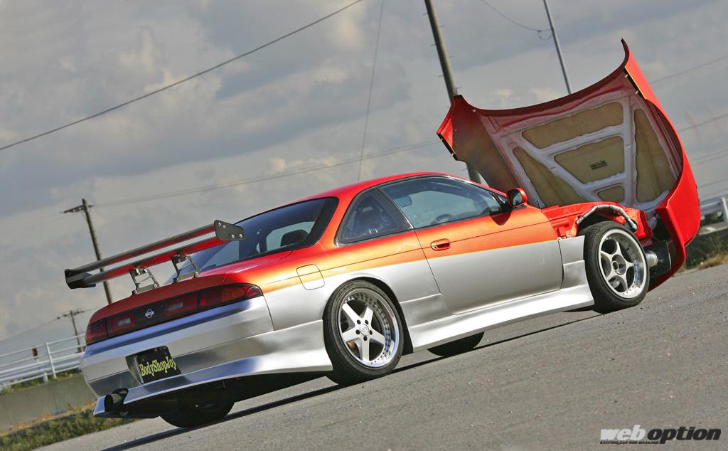 ボディカラーはオレンジとシルバーのツートンにしてレーシングカー風を演出。オーナーの拘りによって誕生した唯一無二のスタイリング、あえてS14をベースにしているところにもセンスの良さを感じさせてくれる。