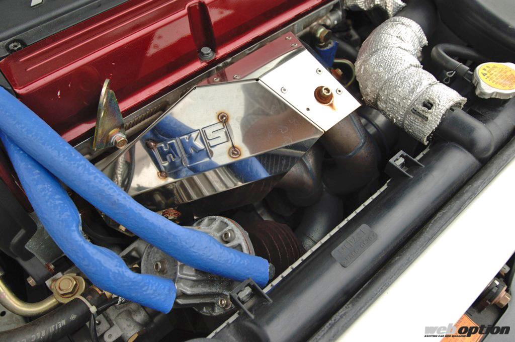 マシンメイキングにあたっては、スポット溶接増しなどの大掛かりなモディファイは極力避け、ボディ剛性は前後タワーバーと4点式ロールケージの装着だけ。パワー系については東名パワードのキットで排気量を2.2Lまでスケールアップすると同時に、GT3037Sタービンをインストール。F-CON VプロおよびEVCによる綿密な制御によって、ブースト1.5キロ時に480psを発生させている。