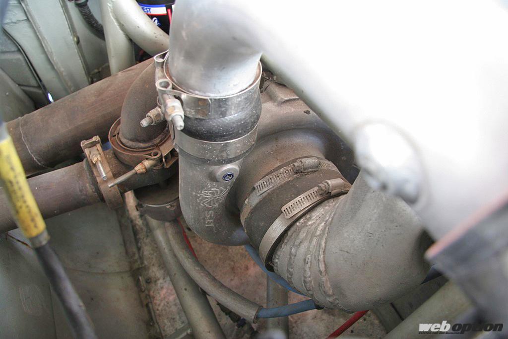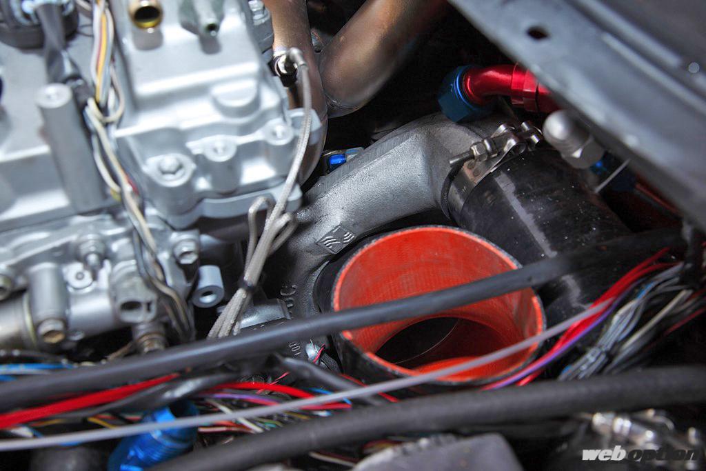 それに合わせて、ヘッド周りも各種加工や強化バルブスプリングなどでチューニング。これにボルグワーナー製S300タービンを組みあわせ、最大ブースト圧2.3キロ時に775ps!! を発揮。オーナーいわく「1.5Lターボっていうと、昔のF1みたいでカッコ良いだろ?」とのこと。なるほど(笑)! しかも、「タービンを撮影したい」と言ったら、わざわざエアファンネルを外してくれた。感謝!