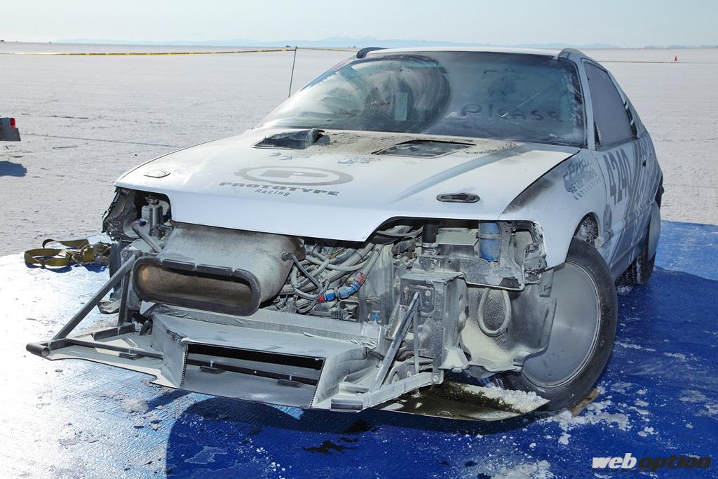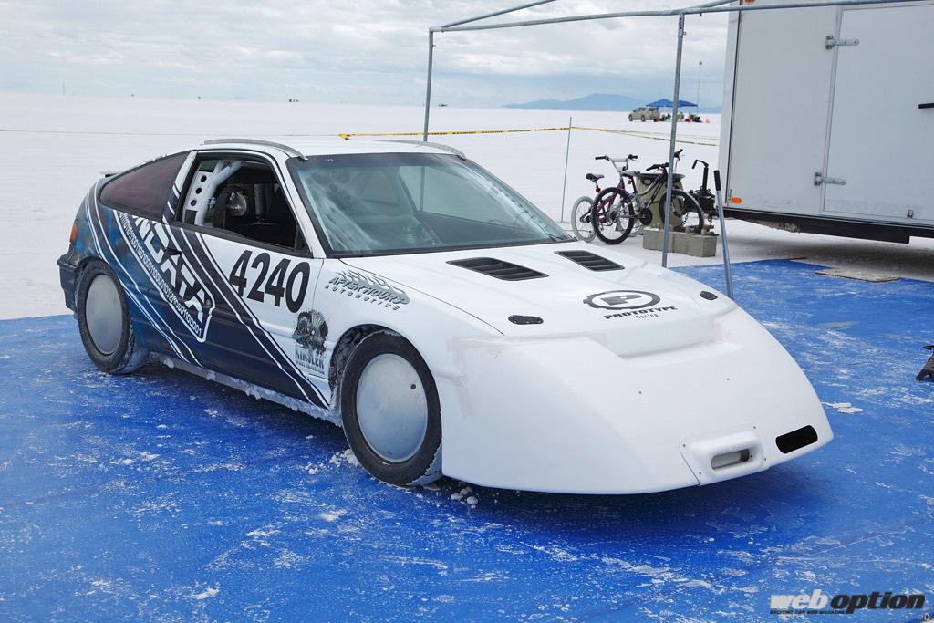 ロングノーズが目を引くCR-Xは、ホンダ車用CPで日本でもよく聞くようになってきたホンデータ&プロトタイプレーシングが送り込んだ1台。エンジンはK20Aに換装され(オーナーに話を聞けず詳細は不明)、NAチューンながら300km/h寸前の記録を出したのは見事だ。