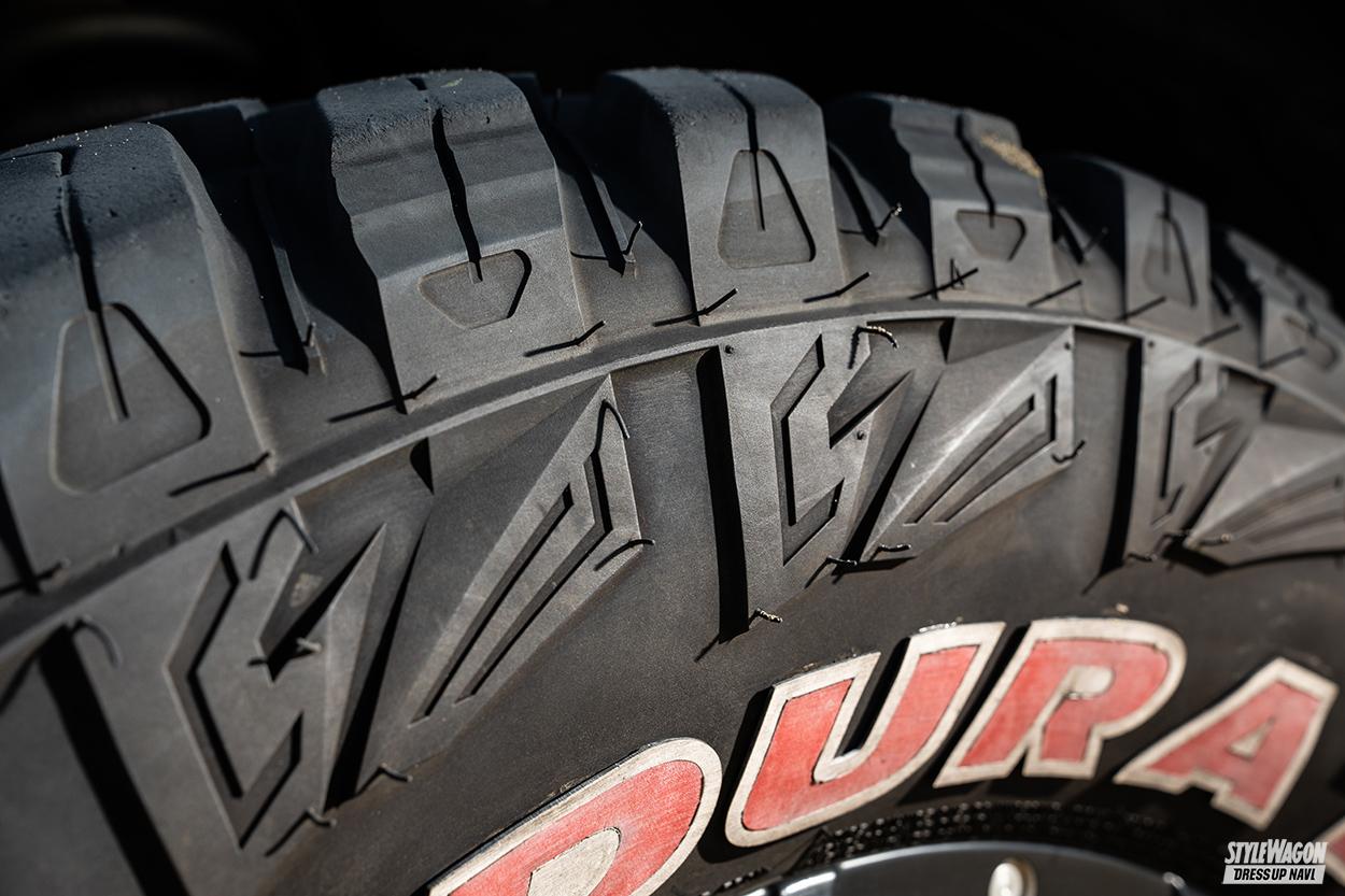 アメリカのカリフォルニア州を拠点とするデュラターンのマッドテレーンタイヤ「トラヴィアM/T」は、マッド路面でのパフォーマンスを追求し、高い耐久性も備える。荒れた路面でも確実なトラクション性能と操作性を生み出すトレッドパターンは、愛車によりアグレッシブなイメージをプラスしてくれる。また、オンロードでの乗り心地や静粛性も確保。アウトラインホワイトレターを全サイズに採用している点も見逃せない。