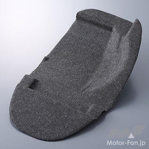 トランク底面と荷物との擦れによる傷つきを防止する暑さ約2.5㎜の底敷きマットで、専用設計だから凹凸にもぴったり沿う作り。場合によっては荷物満載で頻繁にストップ&ゴーを繰り返す二種スクだけに収納スペースのケアにうってつけ!