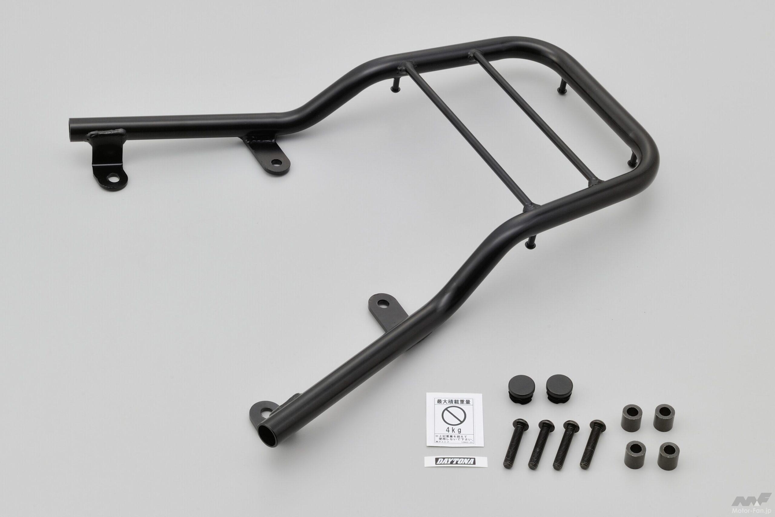 素材はスチール材でブラック仕上げとすることで車体に馴染むスタイル。積部分サイズは長さ196×前幅232×後幅266㎜で、最大積載量は4kgとなっている。