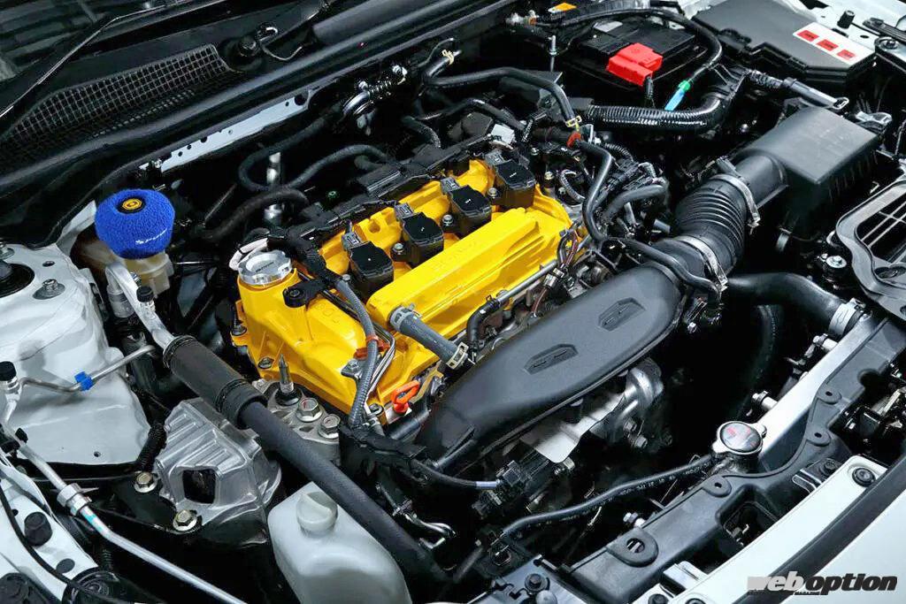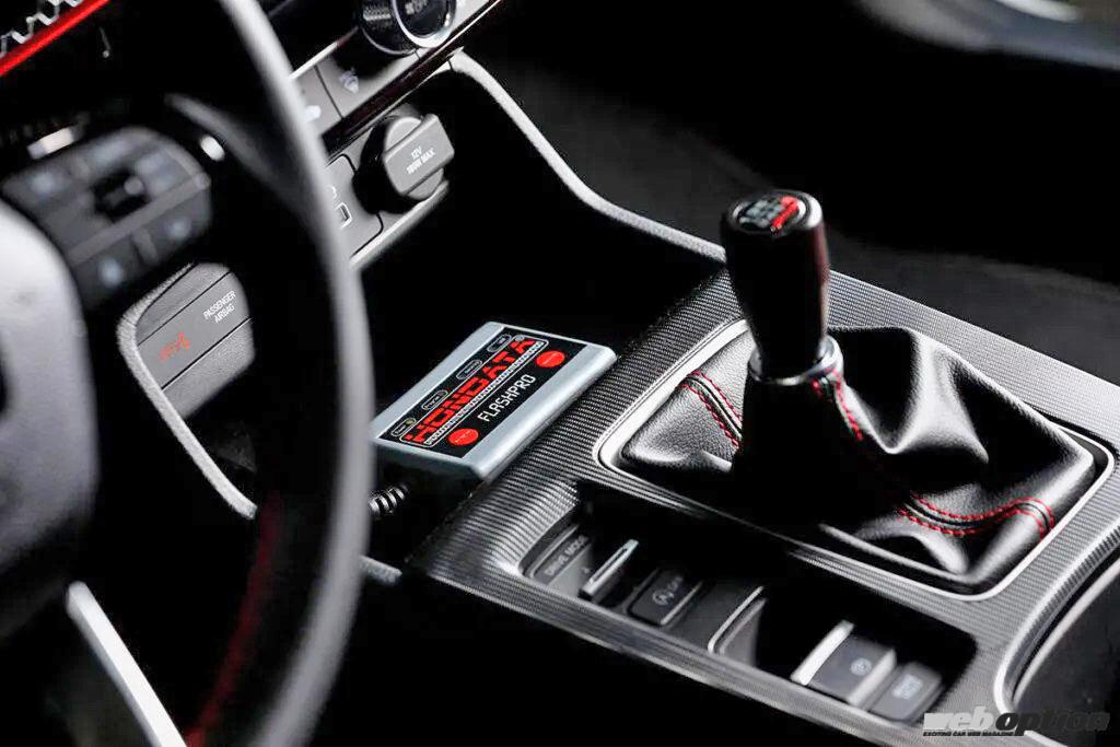 そんなSiに対し、スプーンは早くもファーストステップチューンを構築してきた。FE1型シビックSiに搭載されるL15CはFL1用のパワーアップ版で、カタログスペックの200psに対し実測は186psだった。そこにHONDATAを用いたブーストアップを施工。このHONDATAはFL1では約50psのエクストラパワー獲得を実現している。