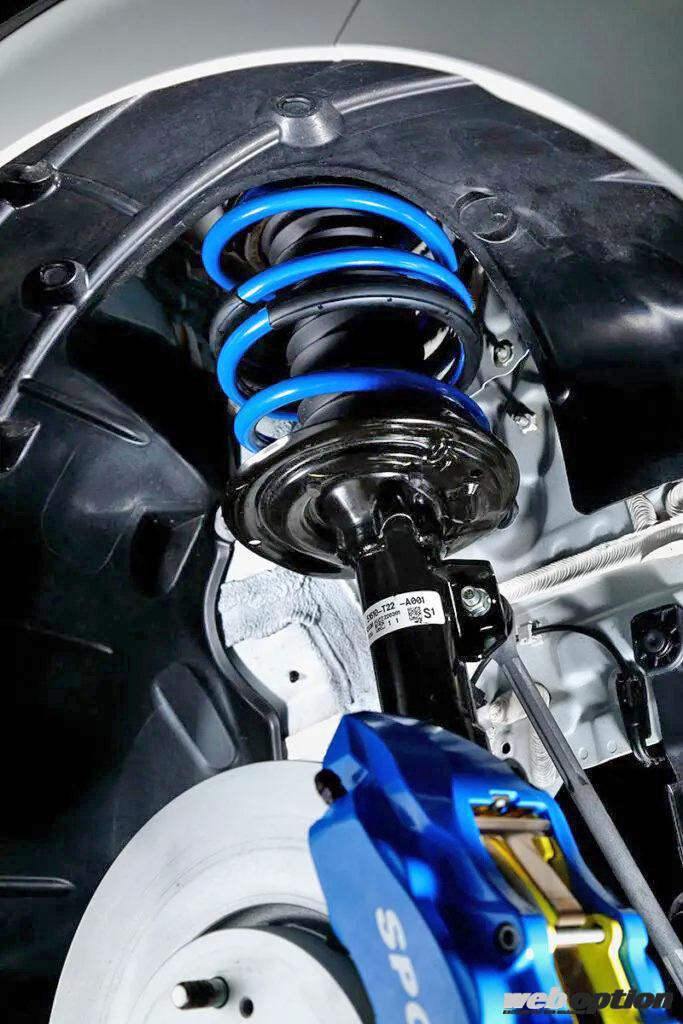 スポーツバージョンのSiはスプリングレートに加え、ダンパーのロッド径も太い専用品。まずはローダウンスプリングを試作して今後テストを重ねていく。