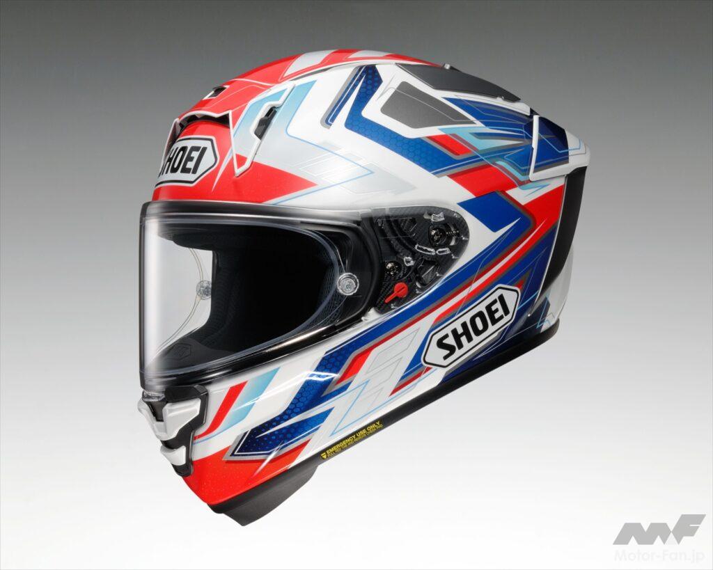 「X-Fifteen ESCALATE(エックス フィフティーン エスカレート)」の概要 ■発売時期:2023年3月 ■価格:89,100円(消費税込み) ■カラー:TC-1(レッド / ブラック)、TC-2(ブルー / イエロー)、TC-4(グリーン / レッド)、 TC-5(ブラック / シルバー)、TC-10(ブルー / レッド) ■サイズ:サイズ:S(55mm)、M(57mm)、L(59mm)、XL(61mm)、XXL(63mm) ■規格:JIS、FIM、MFJ公認 ■構造:AIM+( Advanced Integrated Matrix Plus Multi-Fiber) ■付属品:布袋、ブレスガードJ、チンカーテンD、ロアエアスポイラー、シリコンオイル、防曇シート、SHOEIロゴステッカー、シールド用ステッカー(No.11ステッカー)