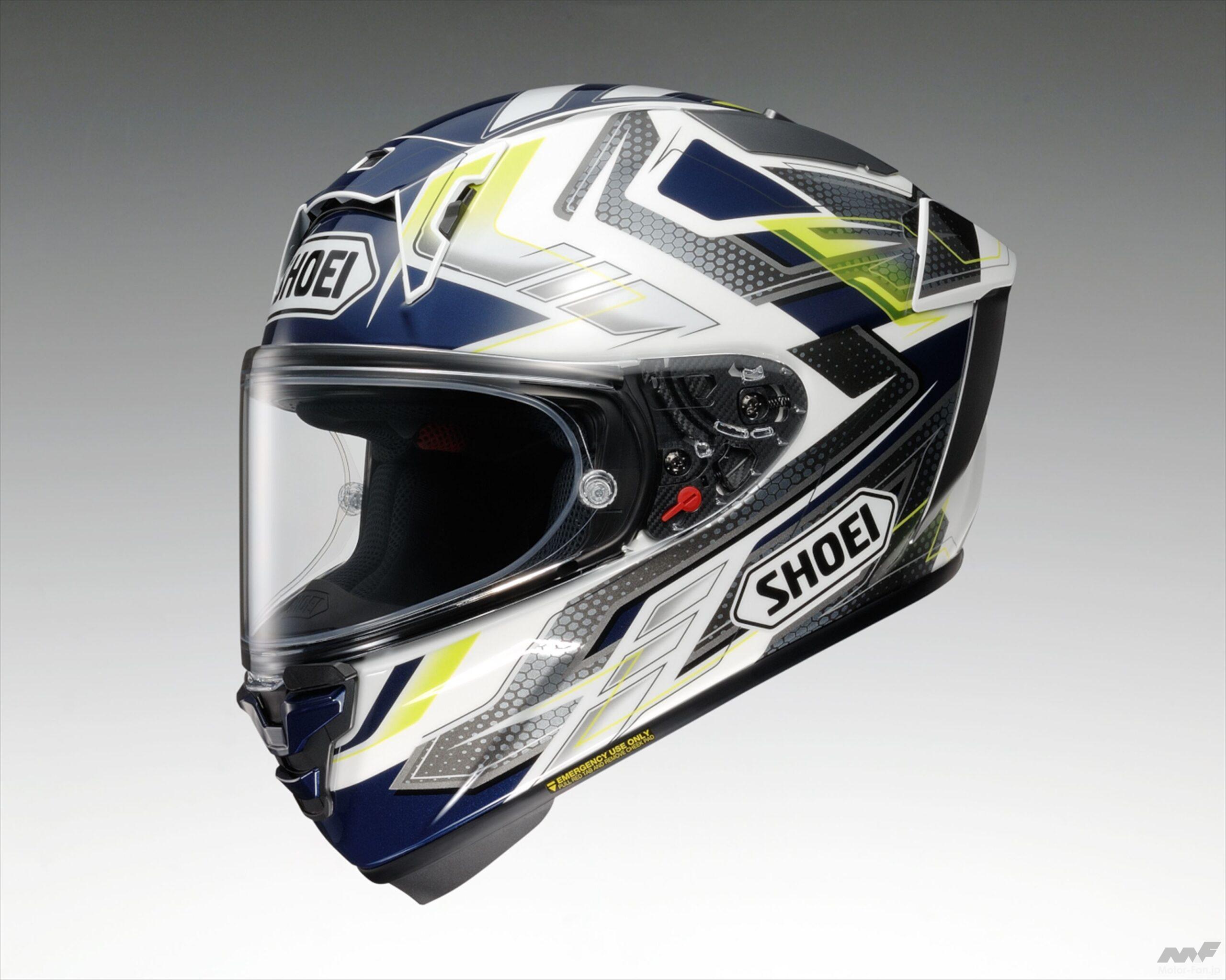 「X-Fifteen ESCALATE(エックス フィフティーン エスカレート)」の概要 ■発売時期:2023年3月 ■価格:89,100円(消費税込み) ■カラー:TC-1(レッド / ブラック)、TC-2(ブルー / イエロー)、TC-4(グリーン / レッド)、 TC-5(ブラック / シルバー)、TC-10(ブルー / レッド) ■サイズ:サイズ:S(55mm)、M(57mm)、L(59mm)、XL(61mm)、XXL(63mm) ■規格:JIS、FIM、MFJ公認 ■構造:AIM+( Advanced Integrated Matrix Plus Multi-Fiber) ■付属品:布袋、ブレスガードJ、チンカーテンD、ロアエアスポイラー、シリコンオイル、防曇シート、SHOEIロゴステッカー、シールド用ステッカー(No.11ステッカー)