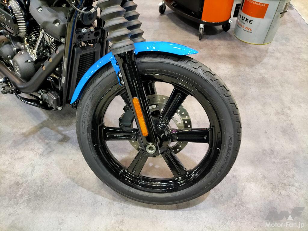 スピーカーなどの音響機器を導入した、上記の大型フロントカウル付きモデル「Street Glide ST」とは異なり、カウル類やケース類を排除した、ロー&ロングスタイルの「Street Bob 114」。680mmという低めに抑えられたシート高、長く伸びたフロントフォークなど、チョッパーカスタムのベースとしても人気のある、ハーレー伝統のアメリカンスタイルに設計されているのが特徴だ。