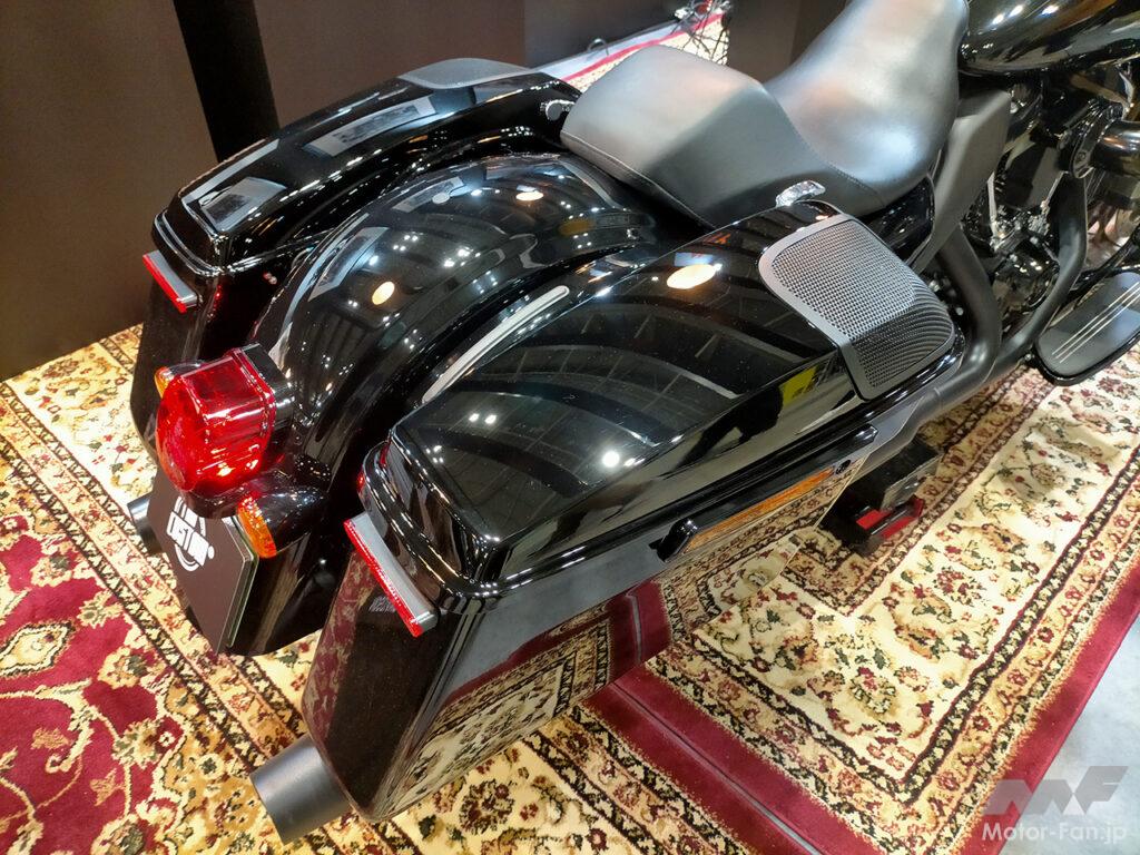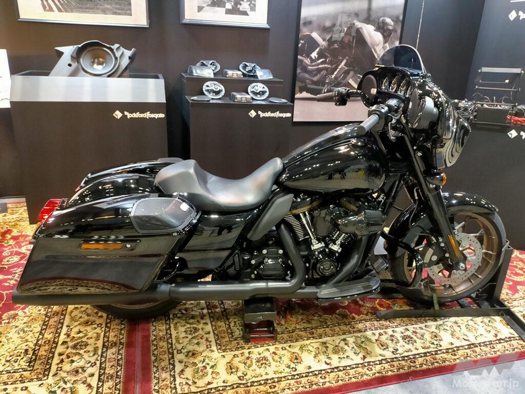 写真はアメリカのアリゾナ州に本拠地を置く、人気の音響機器メーカー「ロックフォード・フォズゲート」のプレミアムサウンドシステムを導入した、ハーレーダビッドソン・Street Glide ST。