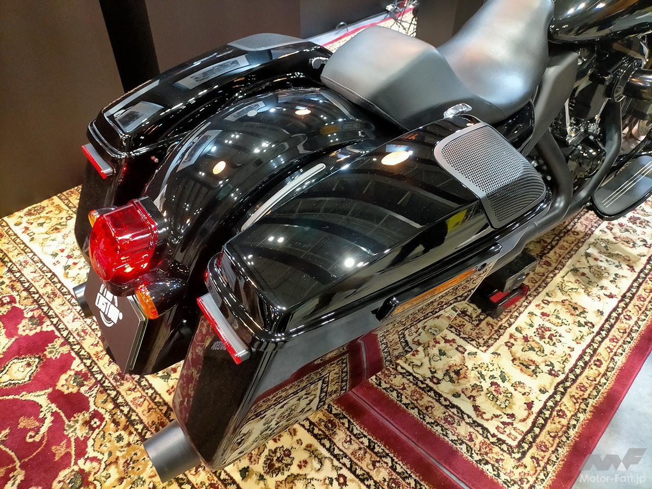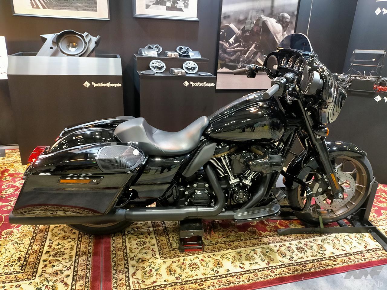 写真はアメリカのアリゾナ州に本拠地を置く、人気の音響機器メーカー「ロックフォード・フォズゲート」のプレミアムサウンドシステムを導入した、ハーレーダビッドソン・Street Glide ST。