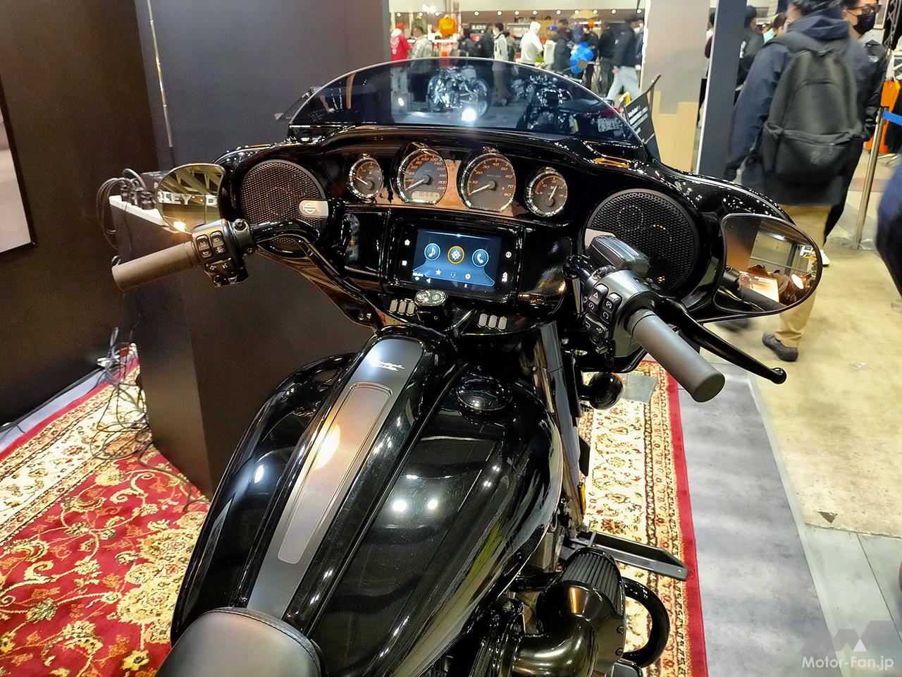 ビッグツアラーであるStreet Glide STのフロントカウル内、またリアサイドケースの上部に、雨天使用も可能な完全防水の高性能スピーカー等を搭載。イベント当日には人気DJ「DJ AKITO」によるサウンドパフォーマンスも開催。本場のテクノロジーを駆使した、最先端かつ良質の音質を披露した。