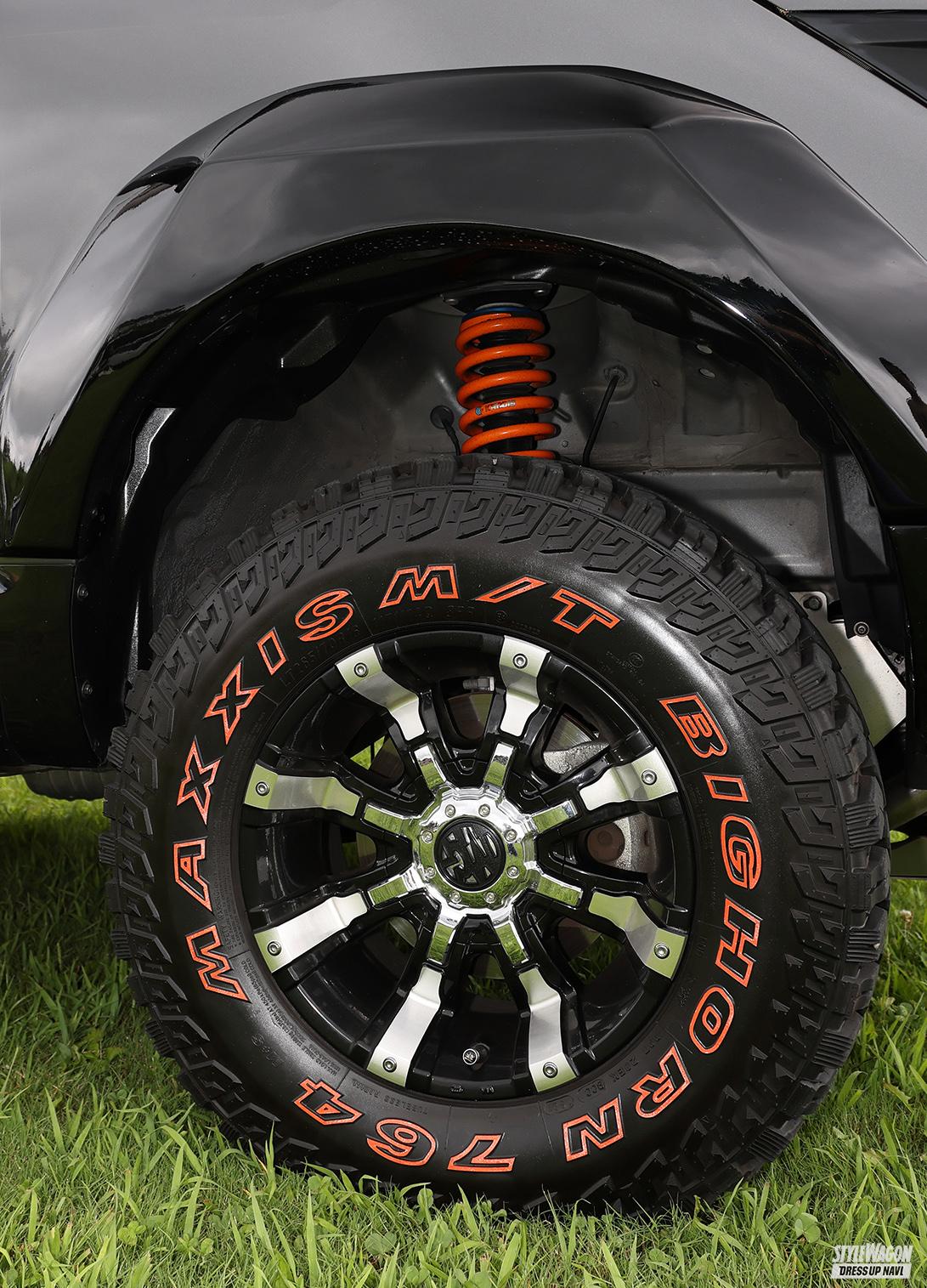WHEEL●MG ビースト(16×8J±0) TIRE●MAXXIS M/T BIGHORN764(265/70) EXTERIOR●S/グリル/ルーフスポイラー/フェンダー/ヘッドライトカバー/Rガードバー=マリス INTERIOR●ステアリング=レアル、シート=レカロ TUNING●車高調=カディス、マフラー=耀オート AUDIO●ヘッドユニット=パナソニック、スピーカー=アルパイン、ウーファー=カロッツェリア