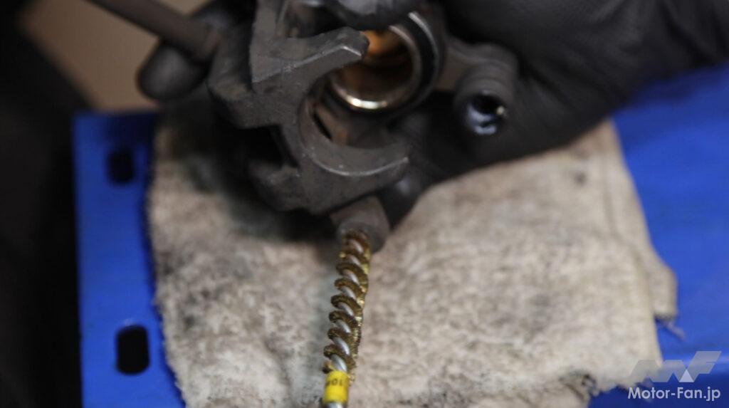 今回は真鍮ブラシ(ネジネジタイプ)を使用しましたが、「タップでもOK」と山根さん。使用歴の長いボルトやネジ穴はすべてメンテナンスするのがモトメディコ流です!