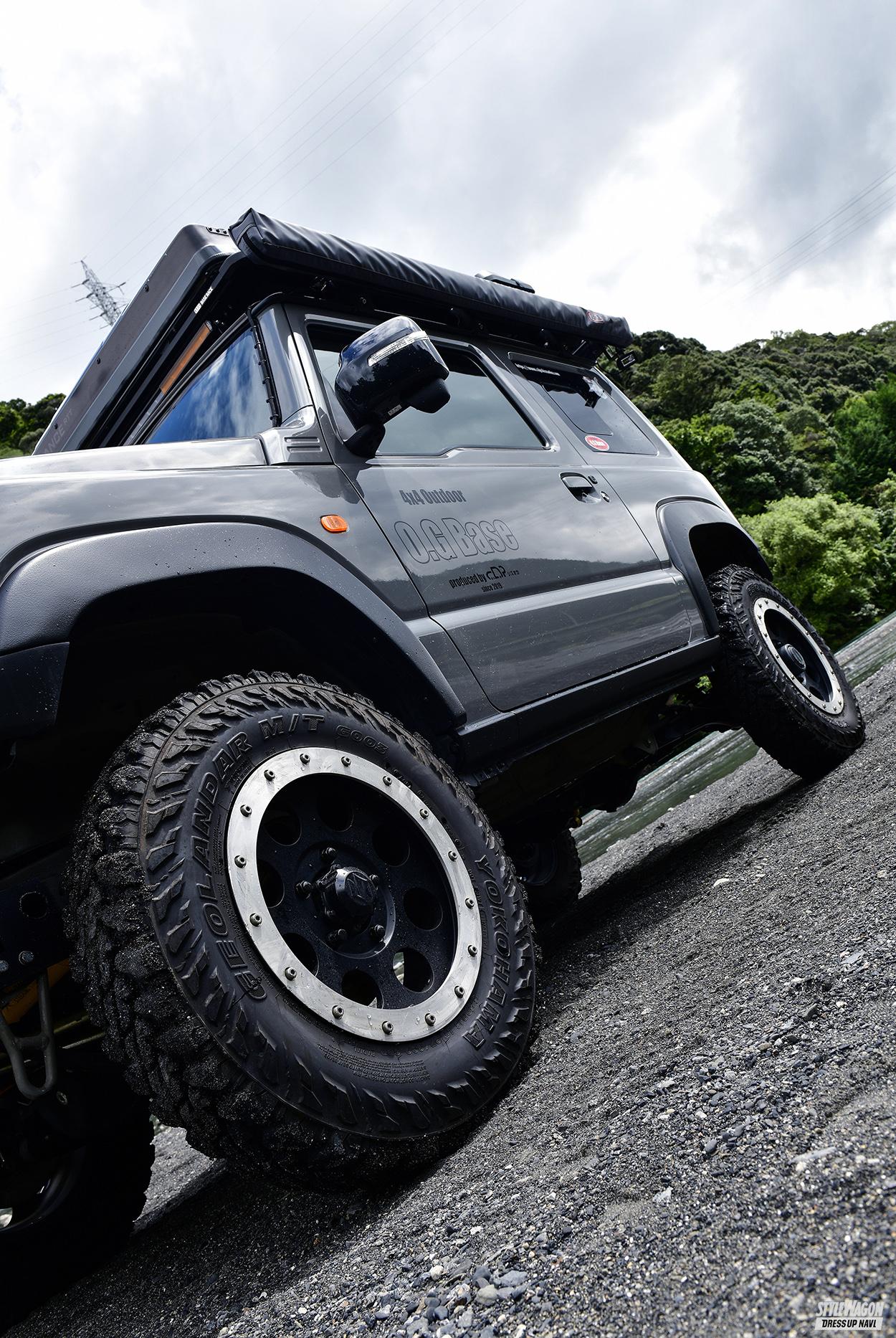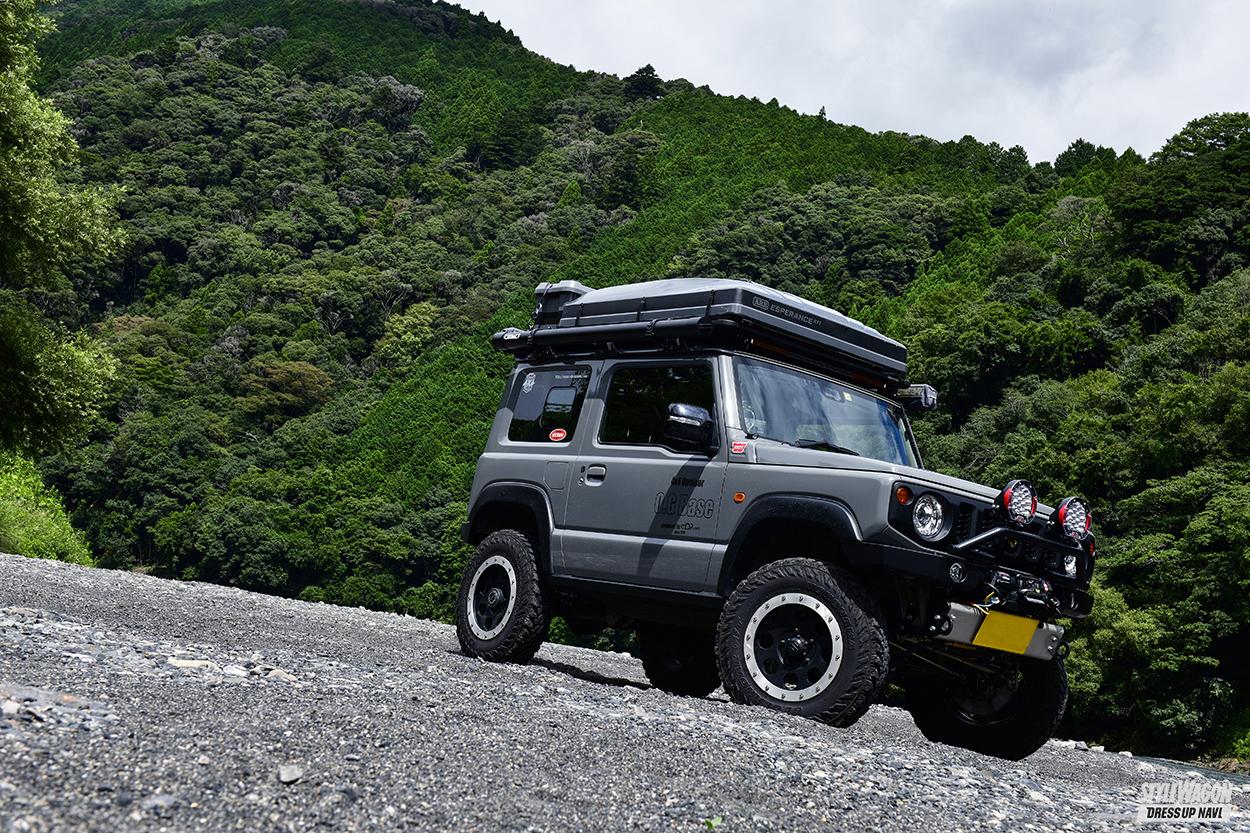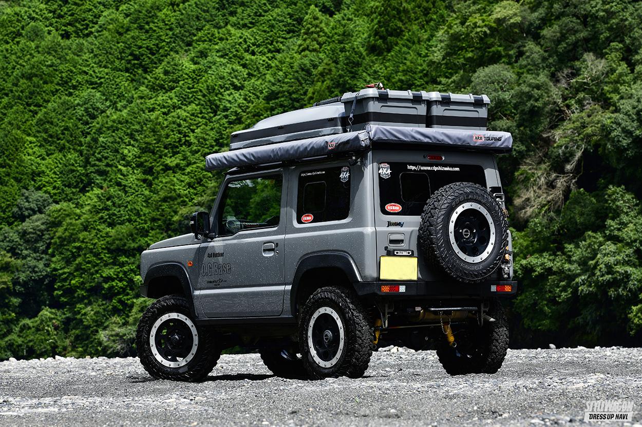 そして普通のクルマでは入れない場所まで行けるのも、高い四駆性能を持つジムニーの強み。デモカーはARB・オールドマンエミューのサスペンションキットで強化した。OGベースの手にかかればフィールドを選ばず、ジムニーで走りとキャンプを高次元で両立させることができるのだ。