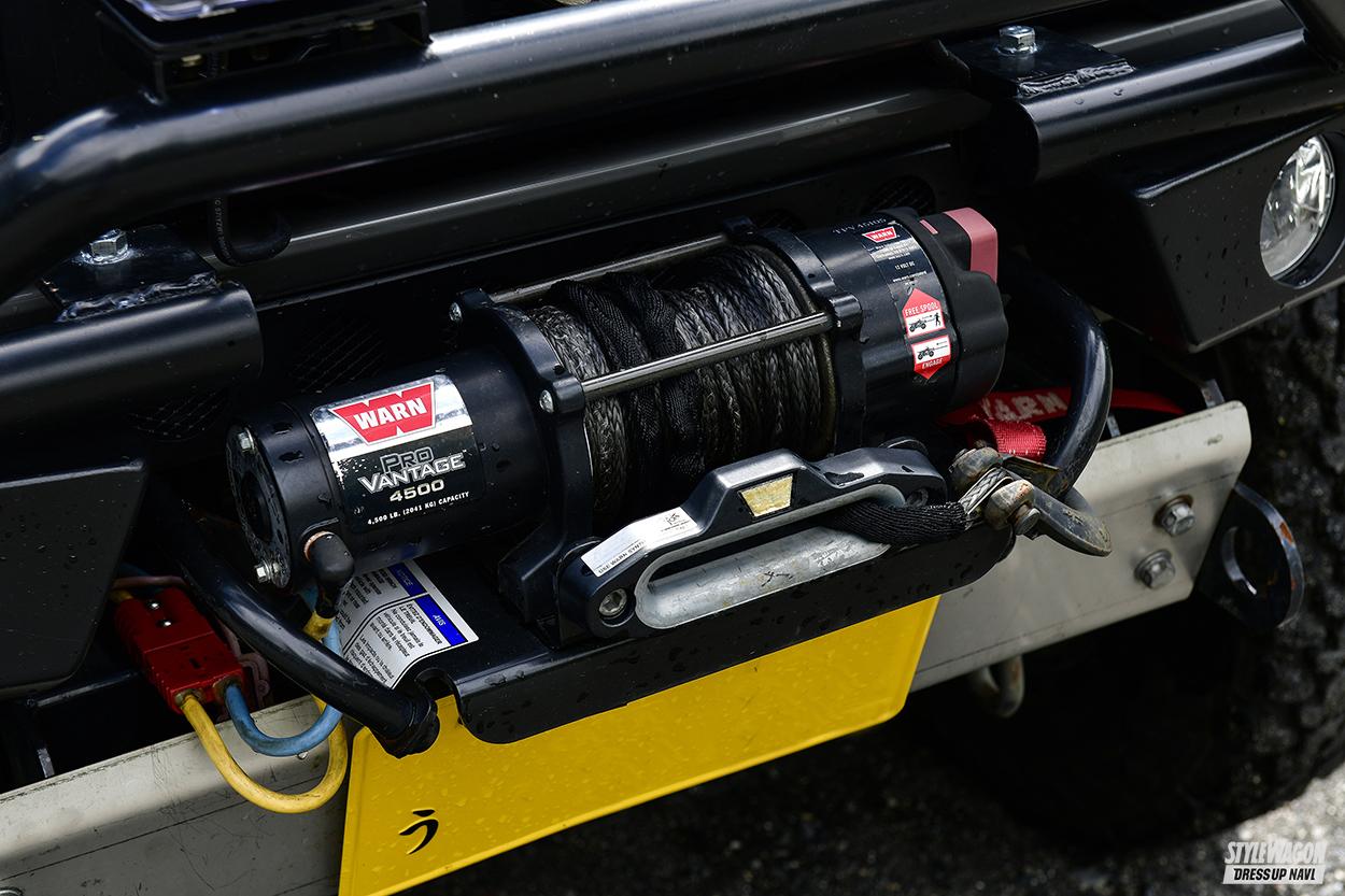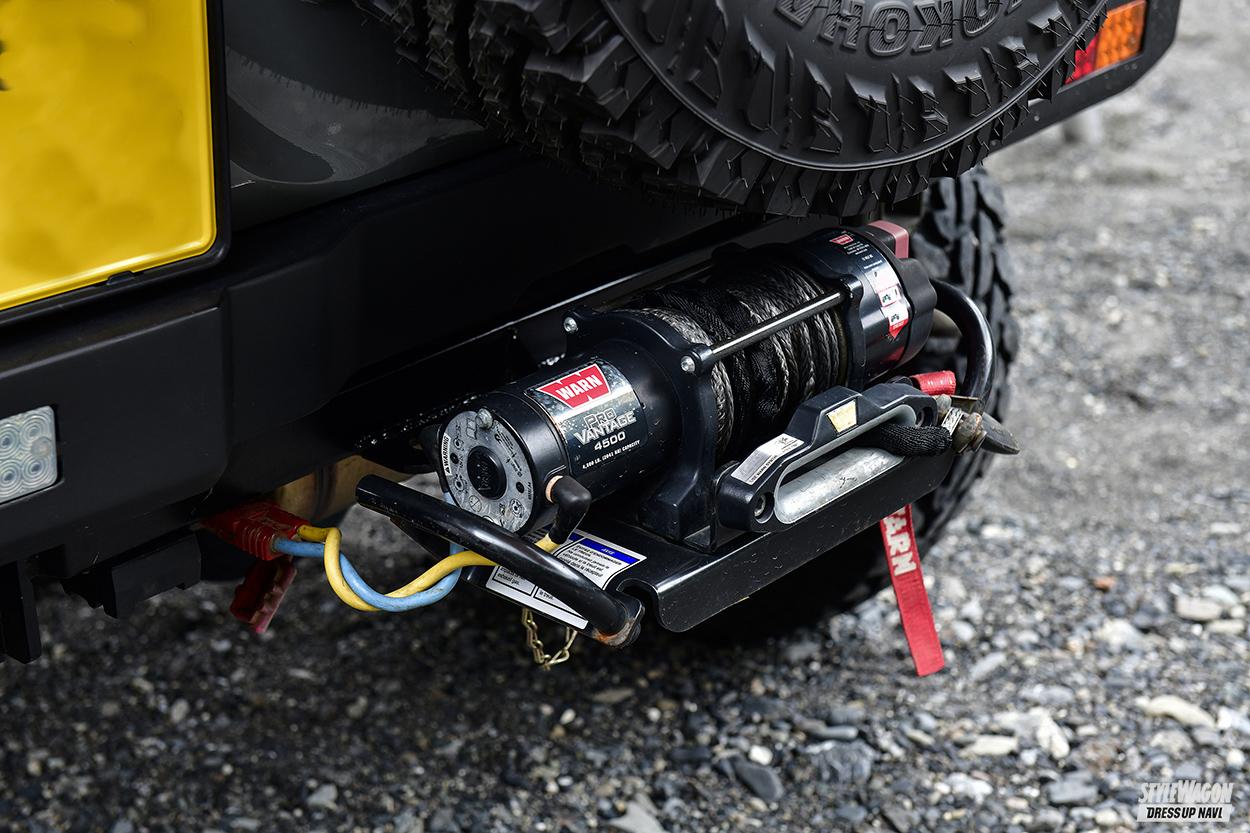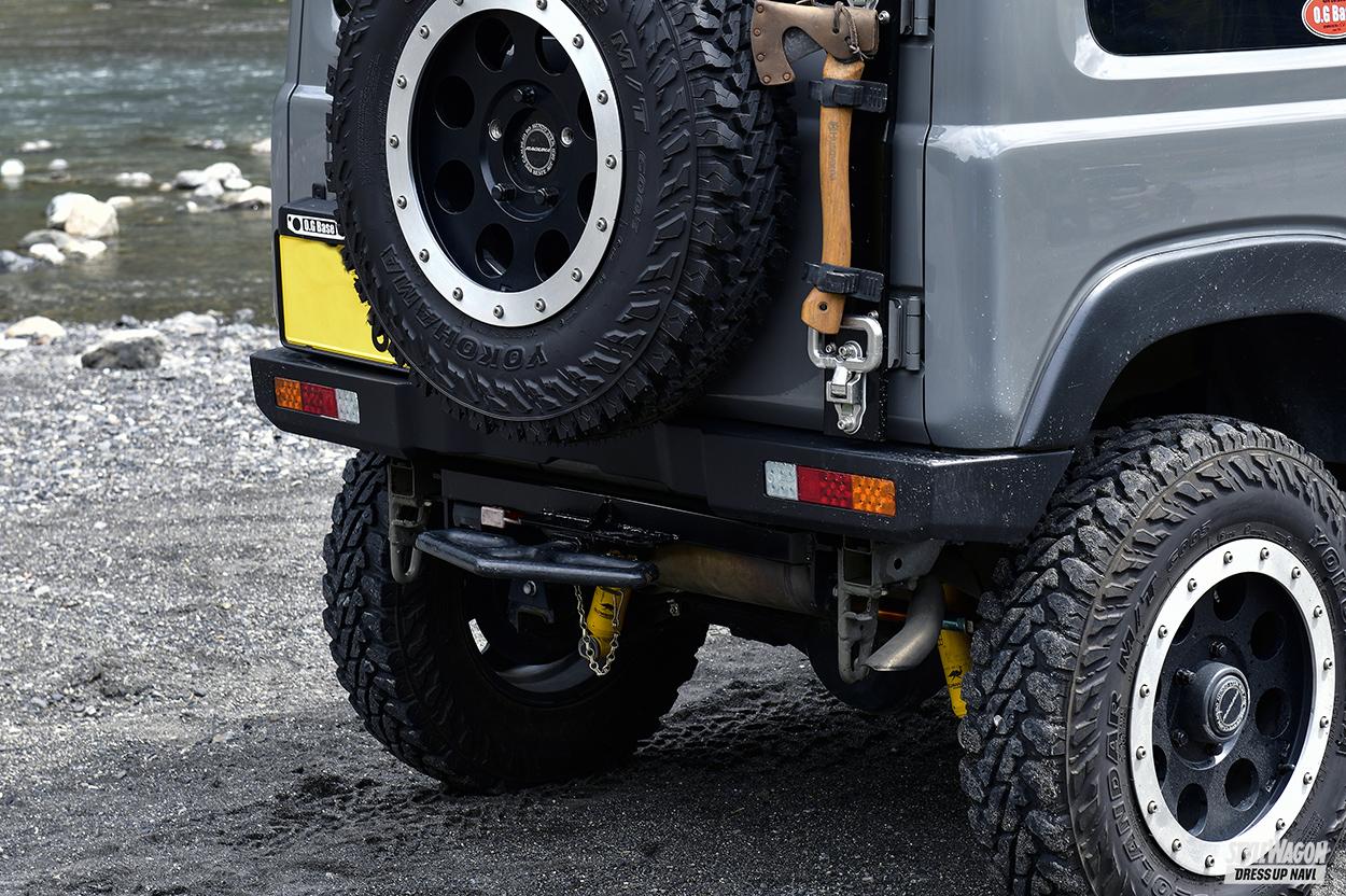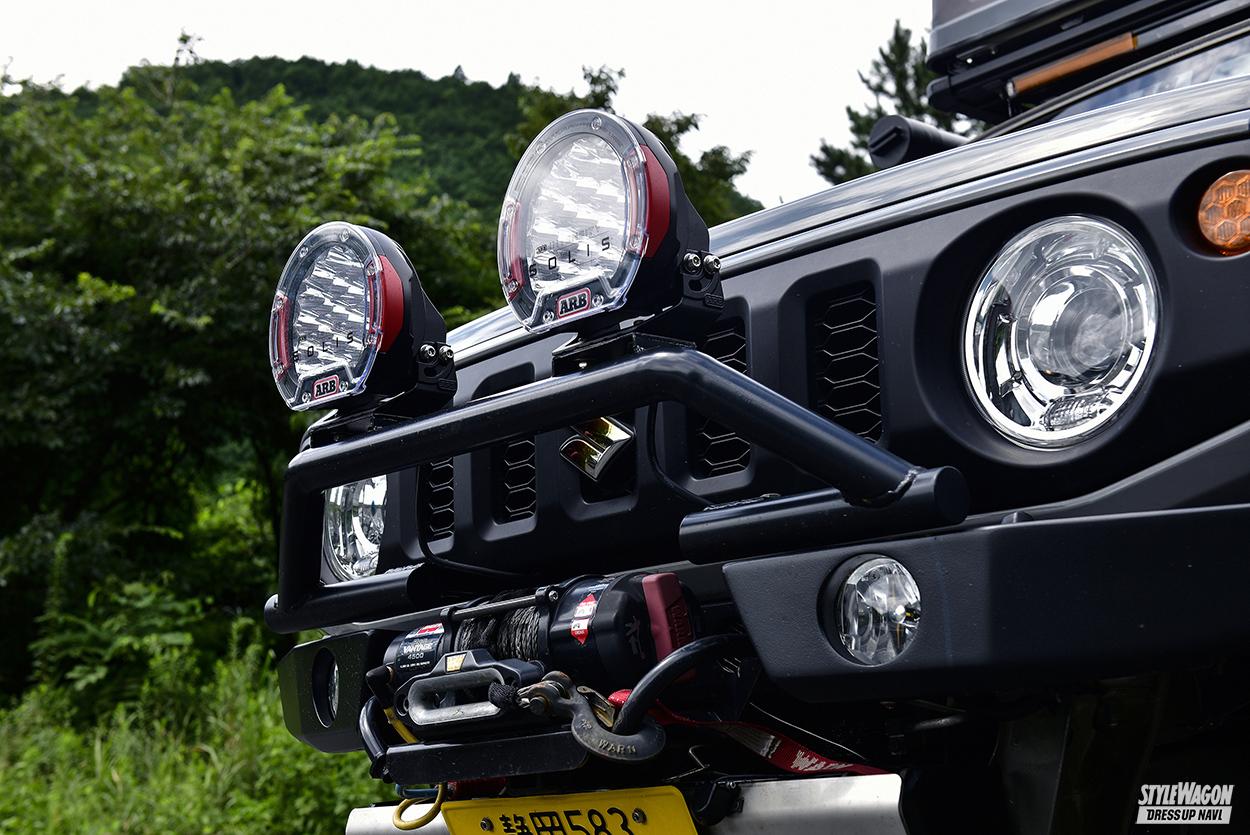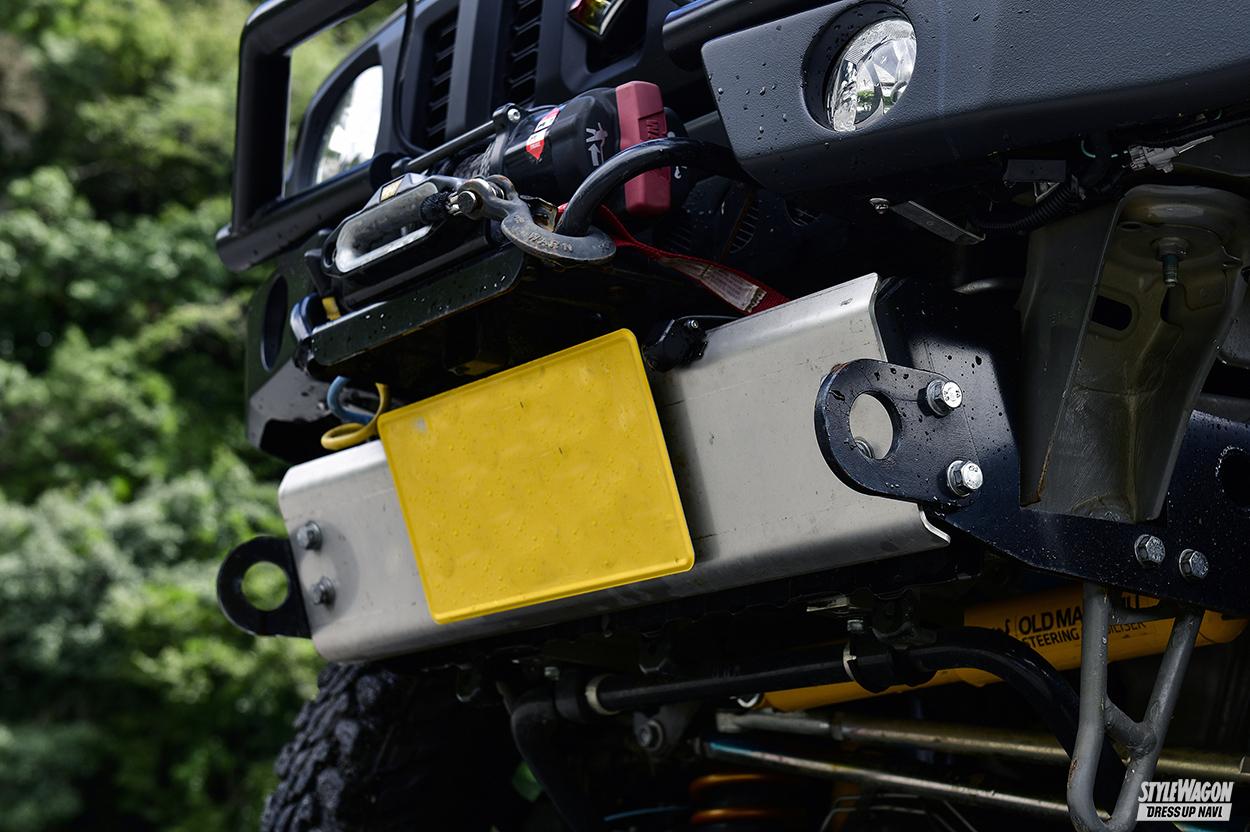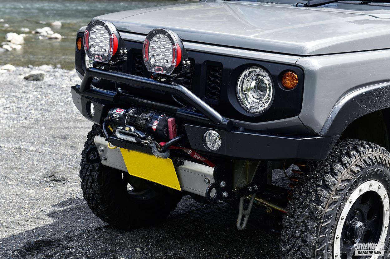 「付けるには強度なども考えないといけないので難しい。たぶん日本で一番ネジ穴が開いているジムニーだと思います(笑)。そういう経験を踏まえ、付いているパーツは基本的にボルトオン。フレームやボディの加工なしで装着できるようにしています」。