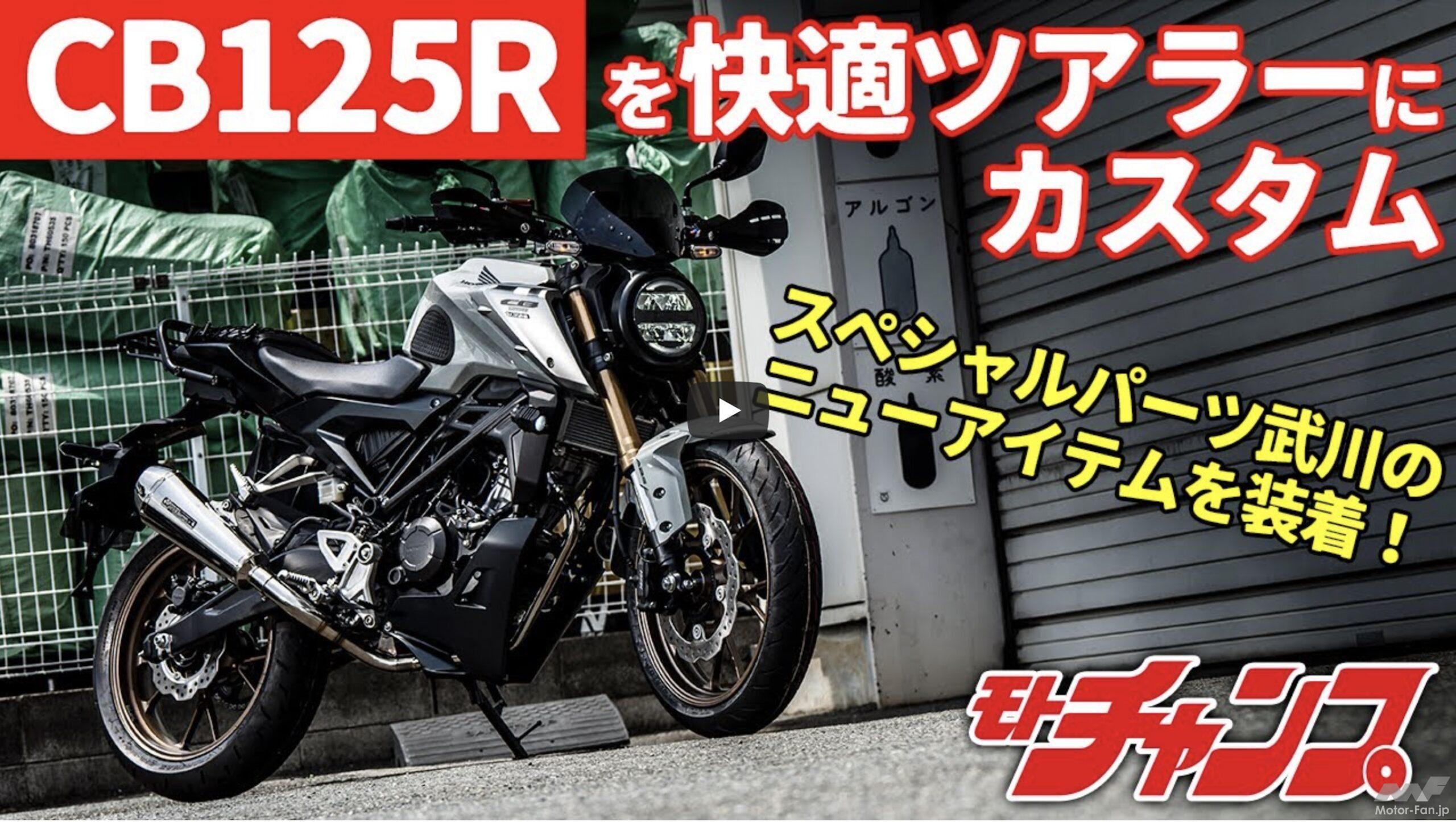 原付が大好きならモトチャンプは欠かせない愛読書だろう。けれど誌面では伝えきれないこともある。そこでユーチューブで無料配信するモトチャンプTVが始まった。チャンネルは「カブ」「新型車研究所」「パーツ紹介」「スクーター」などモトチャンプ本誌で人気の企画をテーマ別にラインナップしている。今回は「パーツ紹介」にアップされた1本の動画に注目したい。というのも、現在市販されている国内メーカー製原付2種で唯一といえるフルサイズ・ネイキッドたるホンダCB125Rのカスタム車が紹介されているのだ。「CB125Rを快適ツアラーにカスタム! byスペシャルパーツ武川」というのがその動画。カスタム系の情報があまり多くないCB125Rだから、気になっている人には必見の内容なのだ。