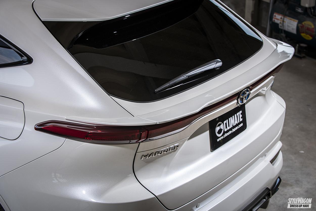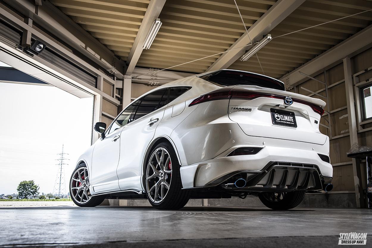 アーバンライクなハリアーを、グレード感の高いスポーティスタイルへと誘うクライメイト。用意されたオリジナルエアロは、80系の特徴ともいえるフロントビューのシャープな印象を強調するかのようなエッヂ感の強いハーフモデルだ。複数のリップが組み合わされたようなフロントスポイラー、フラップ+パネルの2パーツ構成としたサイド、そしてスポーツグレードを彷彿とさせる攻撃的なリア、さらに効果絶大なコの字型ガーニッシュなど、80系の鮮度を高める魅力的なパーツが揃う。そんなエアロに限らず、オリジナルホイールも積極提案中。光輝&大口径なラグモデルが揃う。