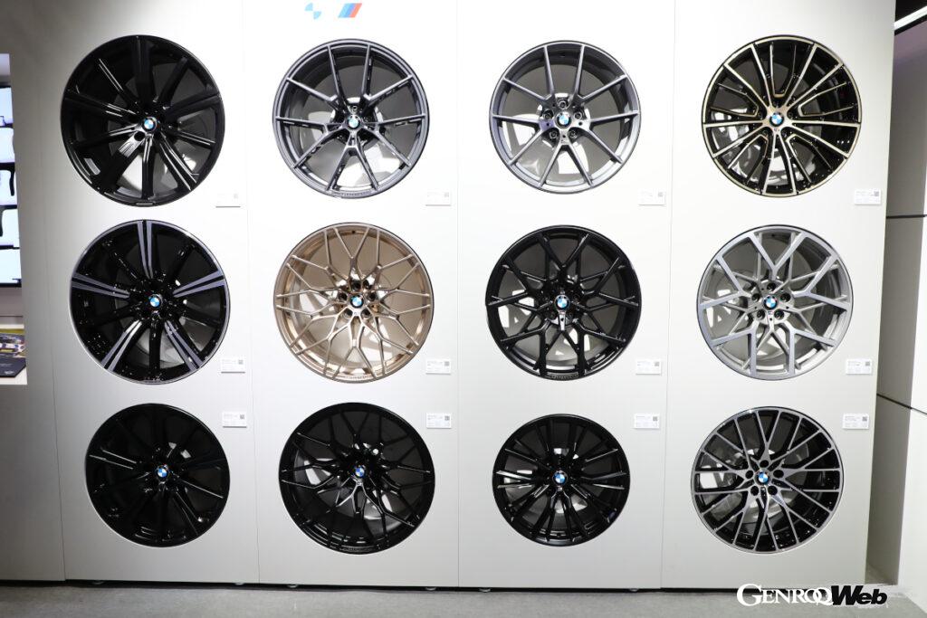 だが、カスタマイズとアフターセールスが乖離しているかというと、そうでもない。実際ドレスアップは新車から数年経って行われることが多いという。今回のブースでも、車検や点検などのタイミングで、現状維持ではなくアップグレードしようという気にさせるMパフォーマンスパーツ装着を提案できるように、様々な仕掛けが用意された。普段は目にすることの無い純正パーツや、ずらりと並べられたオプションの大径ホイールを間近で見られたり、あるいは装着パーツを標本のように実車の脇に展示する「ジオラマ」などだ。もちろん遠くから見ても魅力的な巨大キドニーグリルも集客に貢献しただろう。