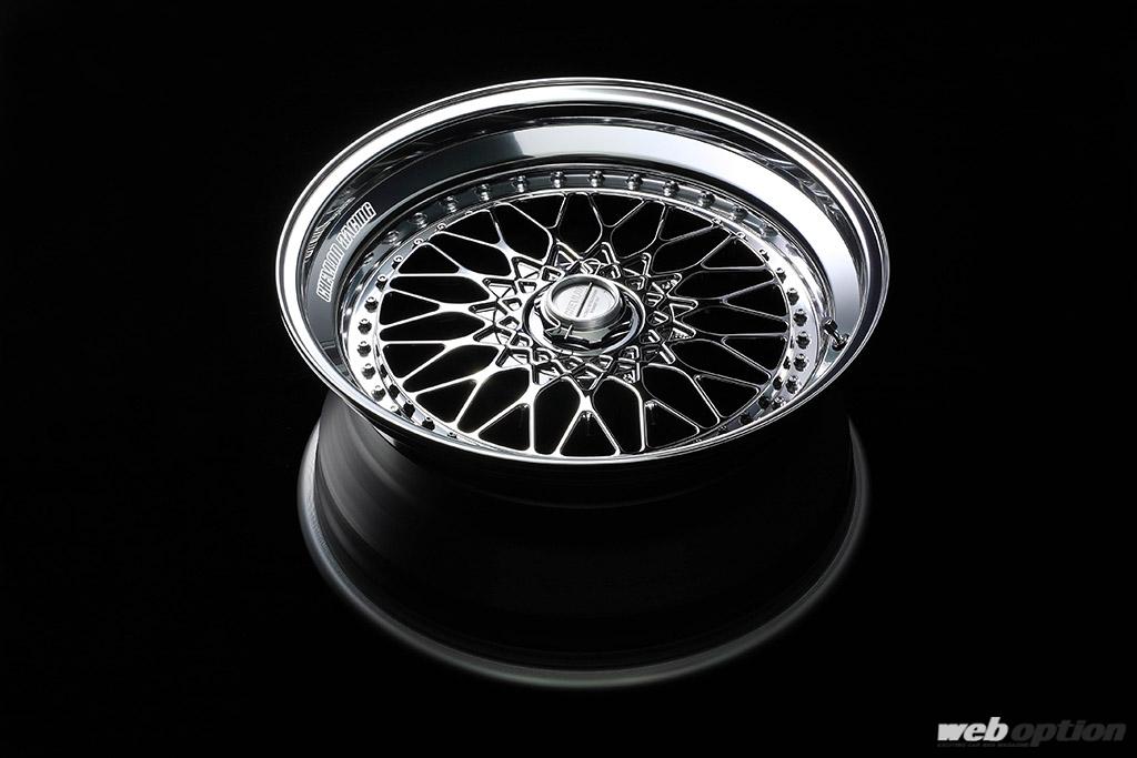 SBCは独特の艶感を放つスパッタリング仕様で、往年のメッシュデザインに新たな価値観を注入。サイズ展開も非常に豊富で、旧車はもちろんシルビアや第二世代GT-Rへのインストールも狙えるだろう。