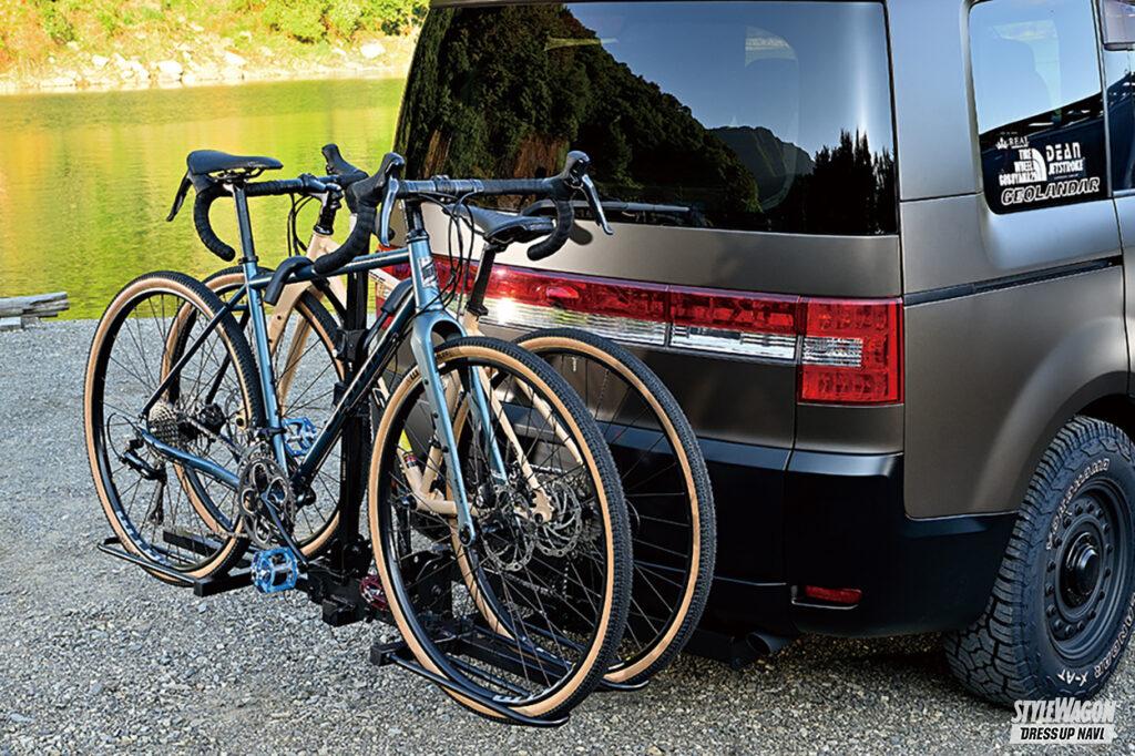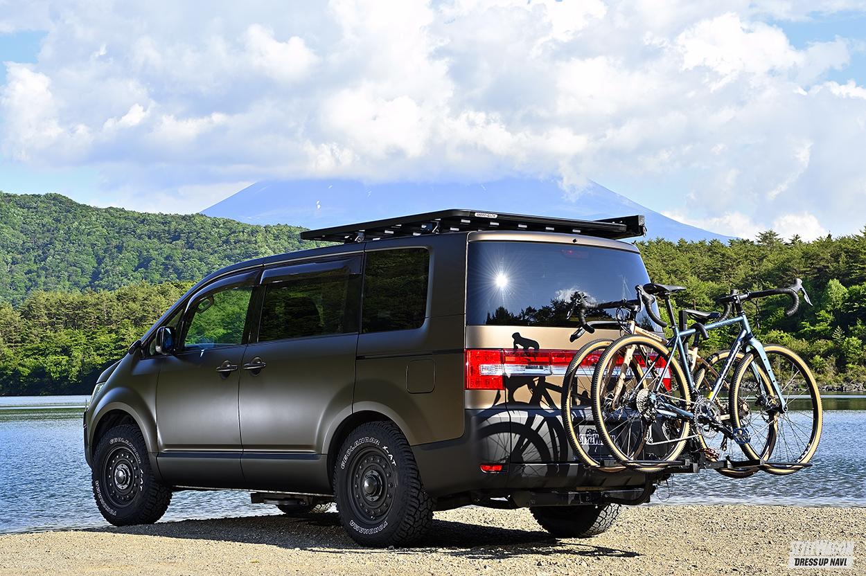 ホイールもオフ系なんだけれど街が似合う、しかもボディ同様マット系カラーリングが映えるということでディーンコロラドをチョイスした。どこか懐かしいレトロモダーンな感じもGOOD。イベント参加時にサイクルキャリを積載するためのヒッチメンバーは、ネクサスジャパンのデリカのマイチェン後用で対応した。
