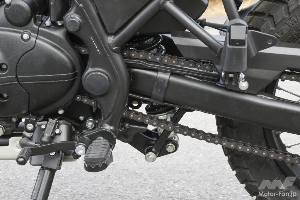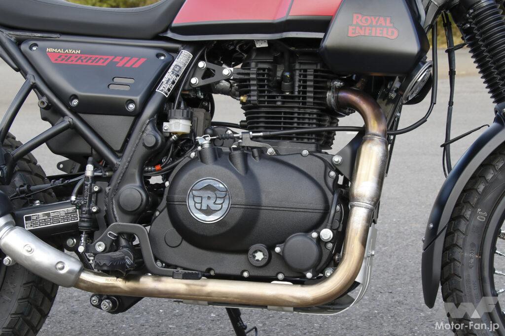 空冷シングルのロングストロークエンジンを搭載。ボア・ストロークは78×86mm。排気量は411ccなので、大型二輪免許証が必要となる。