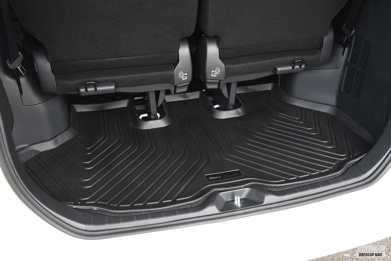 3Dマットにはラゲッジ用も設定。レジャーなど、汚れた荷物を積む時も安心だ。また、スタンダードなフロアマットも、インテリアブランドのアルティナからリリース。こちらは全4タイプから選べる。