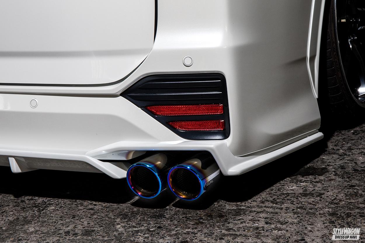 9㎜ワイドと15㎜のアーチ下げを同時に実現できるオーバーフェンダーや、クールらしい躍動的なビジュアルを獲得できるリアディフューザーなどは、特に精悍で効果もバツグン。ヒートブルーグラデーションの4本出しマフラーも高品位で、ワンランク上のスポーティフォルムを狙うのには最適だ。