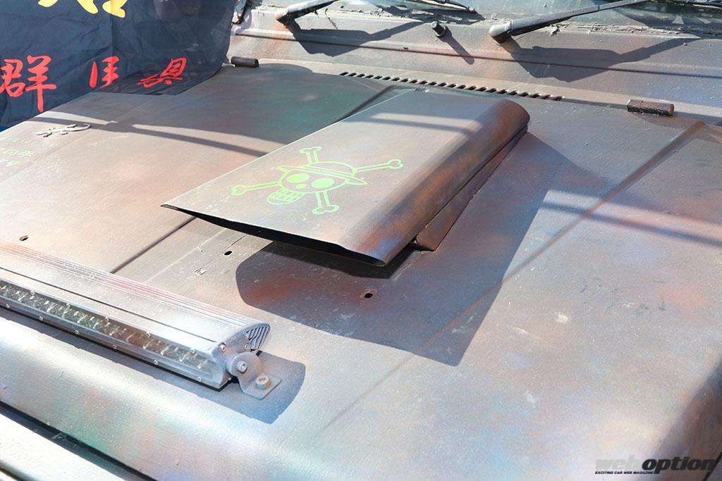 日々の訓練活動による傷やヘコミはボディ全体に及ぶが、注目すべきはサビ風の演出が塗装によるものという点。このイベント参加に合わせてDIYで施工したもので、タミヤのホビー用缶スプレーを大量に使用したそうな。