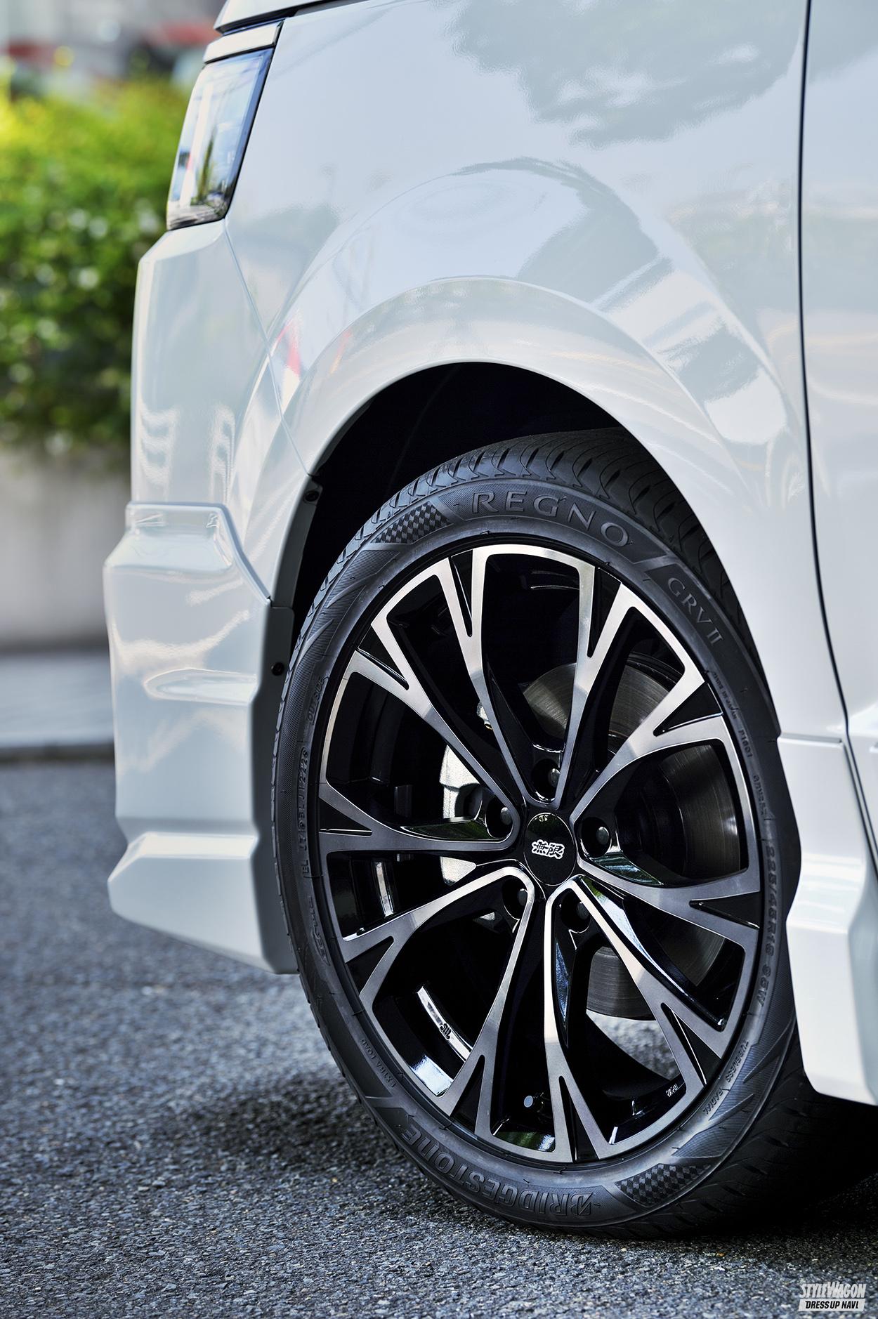 デモカーのスパーダは、エアロやグリルにより重厚感が増し精悍な顔つきに。スポーティでありながら上質なフォルムに仕上げられている。リアアンダースポイラー専用設計となるスポーツサイレンサーは、チタン製のデュアルテールを採用。アイドリング時や低回転域では純正と変わらないほど静かなのに、アクセルを踏み込むとスポーティなサウンドを楽しめる。