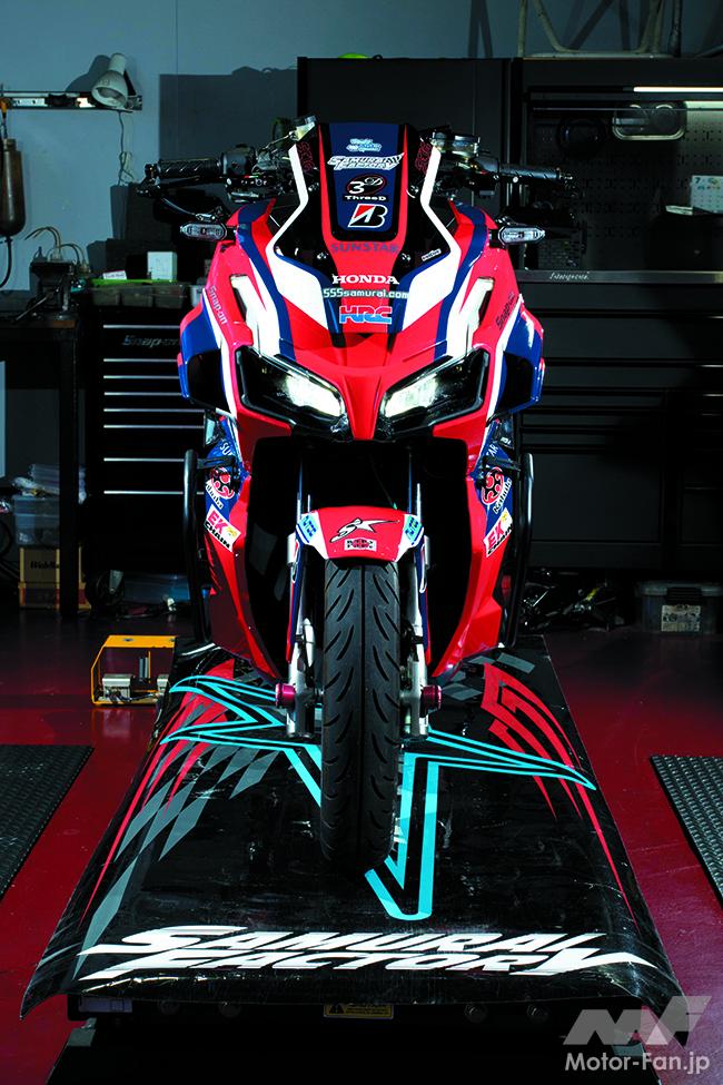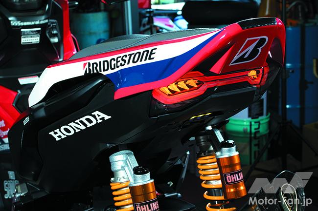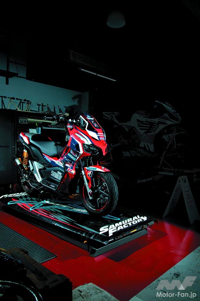 パッと見て、ついにホンダから本気のスポーツ系スクーターが出たのかと思うルックスだが、正体はADV150をベースにしたカスタム。全日本ロードレースや鈴鹿8耐に参戦するサムライファクトリーが仕上げたパドックバイクなのだが、そのCBRっぽいルックスは行く先々で注目を集めているのだ。
