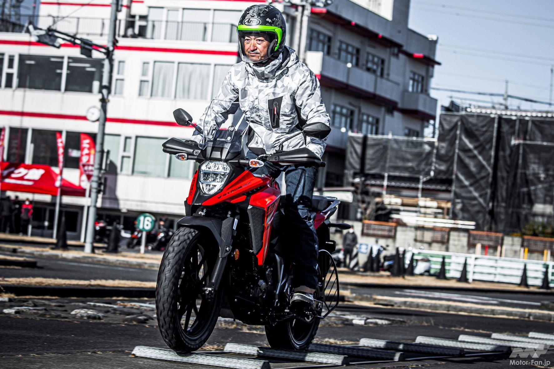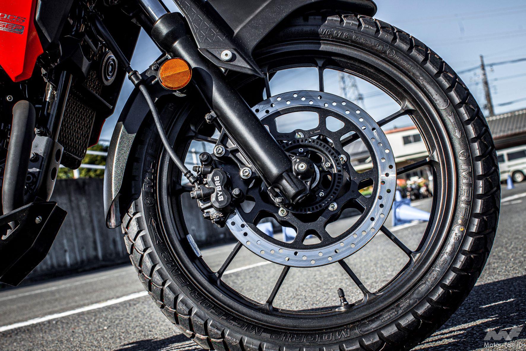 なお、波状路で擬似的な悪路走破性を試してみたが、フロント19インチゆえに17インチ車よりも障害物を乗り越えやすいことを確認できた。加えてホイールベースもジクサーシリーズより95mm長いので、少々バランスを崩したとしてもフラつきにくい。前後サスの作動性はそれなりだが、フラットダートであれば十分に楽しめそうだ。