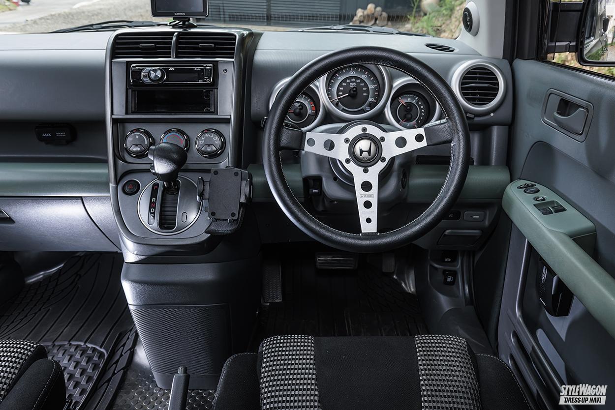 ●ホイール:ブラックライノ・アーチス(15×7.5J+15)●タイヤ:ファルケン・ワイルドピークAT3W(30×9.50R15)●エクステリア:ヘッドライト&テールランプ他=US化●インテリア:シート=レカロ、各部US化