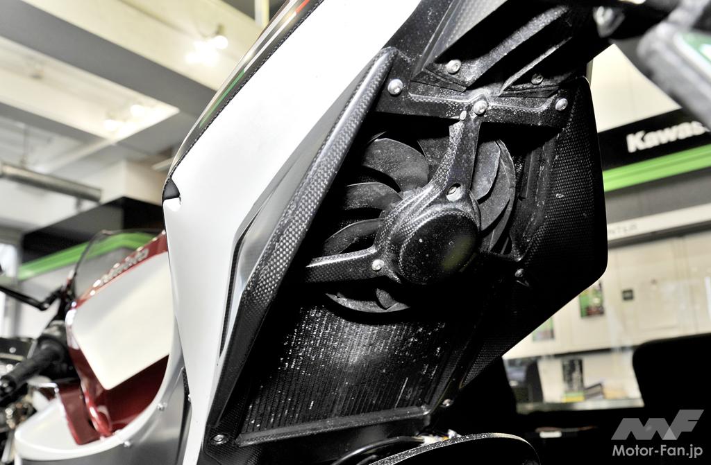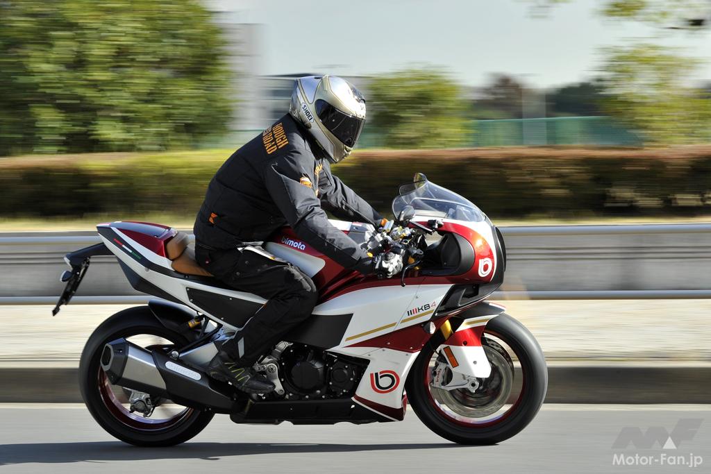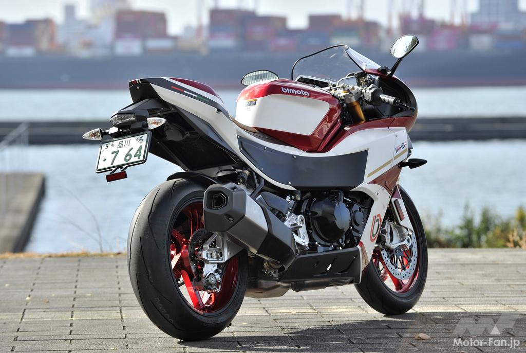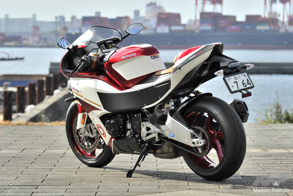 カスタムマシンを製造するフレームビルダーとしてスタートしたビモータは、ロードレースの世界で成功を収めたことによってその名を広く知られるようになりました。レースのノウハウを生かしたフレームやコンポーネンツは市販車にもフィードバックされ、高性能なスペシャルバイクは世界中にエンスージアストを創出しました。ヤマハやスズキ、ドゥカティなどのパワーユニットを独自のシャーシにマッチさせたビモータは、1980年代から2000年代初頭にかけて隆盛を極めました。しかし経営状態に関しては決して順風満帆というわけにはいかず、2019年の時点では活動が休眠状態に陥っていました。そんなビモータに手を差し伸べたのがカワサキです。そしてニンジャH2のスーパーチャージド・エンジンを搭載したTESI H2を製造販売するなど、カワサキ最新モデルのパワーユニットを心臓部に据えたスペシャルモデルを生み出しています。ビモータKB4はニンジャ1000SXをベースにして開発されたモデルで、2022年から国内販売が開始されました。