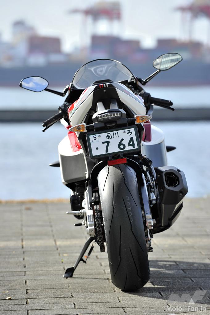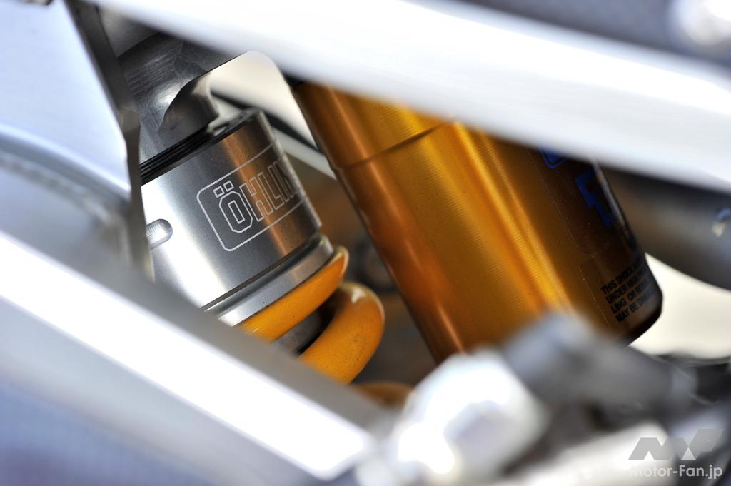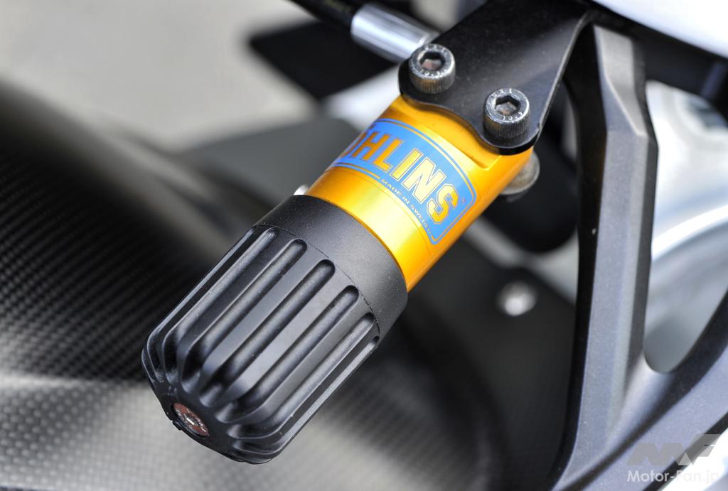 これだけレーシーなモデルだと、足回りの設定はハードなのではないだろうかと思っていたのですが、オーリンズ製の前後サスペンションは市街地走行の低荷重でもしっかり作動してくれ、シート自体の座り心地を除けば、乗り心地は意外なほど快適でした。作動性の良い前後サスも軽快なハンドリングに大きく貢献しています。今回は高速ワインディングを走行していないので明確なことはいえませんが、おそらく高荷重が掛かったときにも的確な減衰力が働き、優れたロードホールディング性を発揮するんじゃないかと思います。ブレンボ製の前後ブレーキも、スピードに関わらず高い制動力とコントロール性を発揮してくれました。