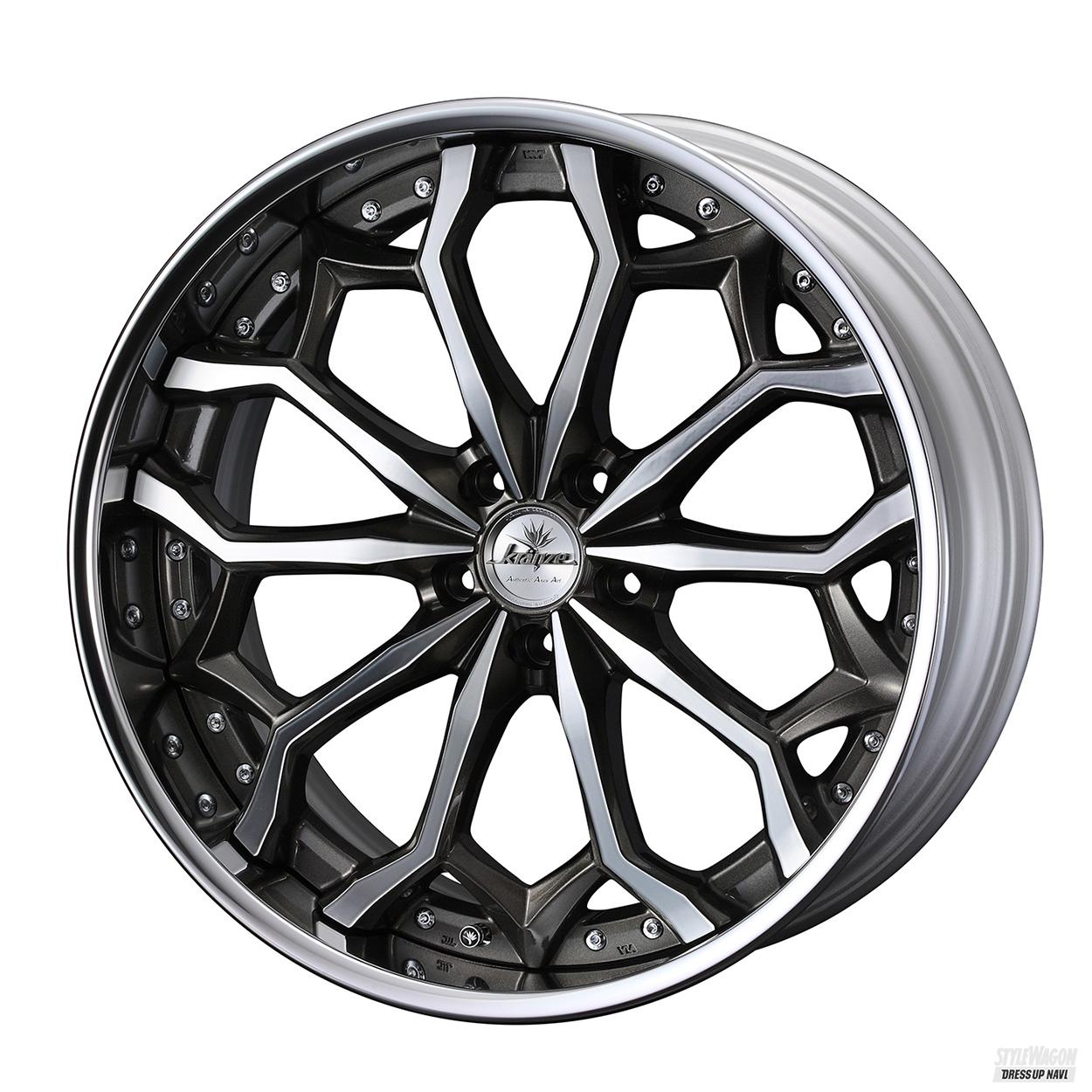 デザインの次に考えたいのが、ホイールの色。近年は、ブラックポリッシュに代表される「カラー+ポリッシュ」が定番かつ人気。ホイールの大部分は塗装し、スポークやリムの天面のみを切削加工するカラーで、ほぼ全てのホイールに設定があるといっても過言ではない。この他には、アルミの素材感を活かした粗磨きのようなブラッシュド、煌びやかなクロームなども高級感を生み出すカラーとして人気。カラーはデザインとともに、どんなスタイルを目指すかに合わせて選ぶことも大切だ。