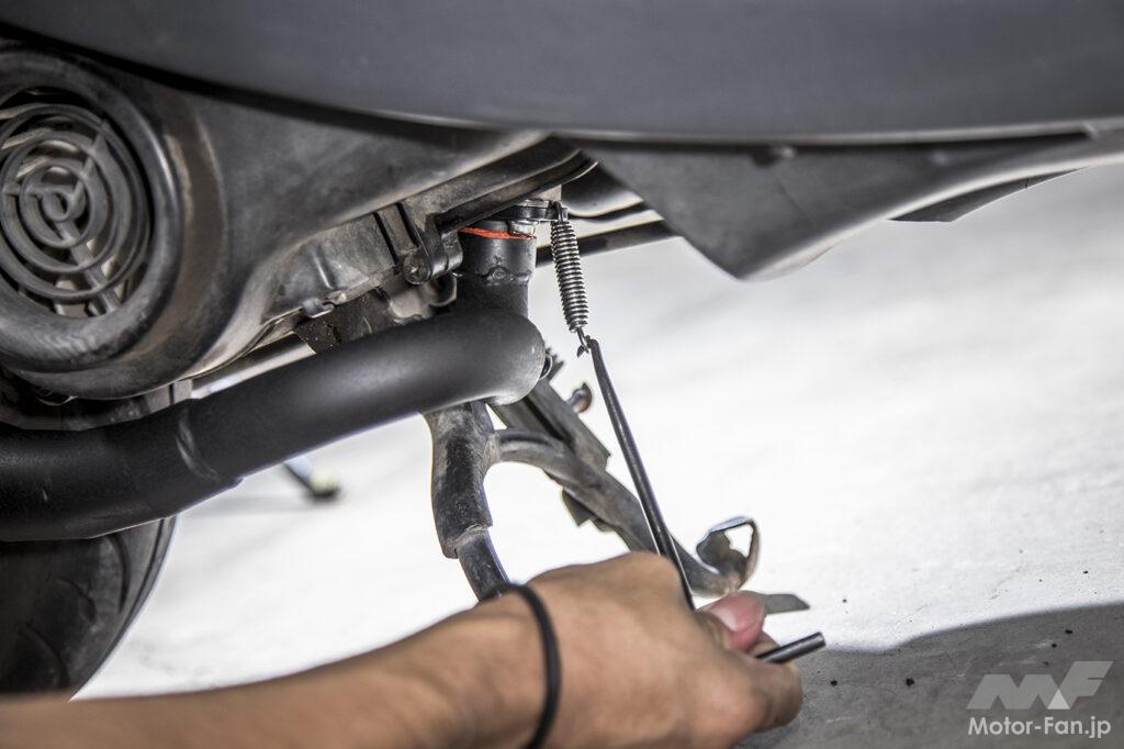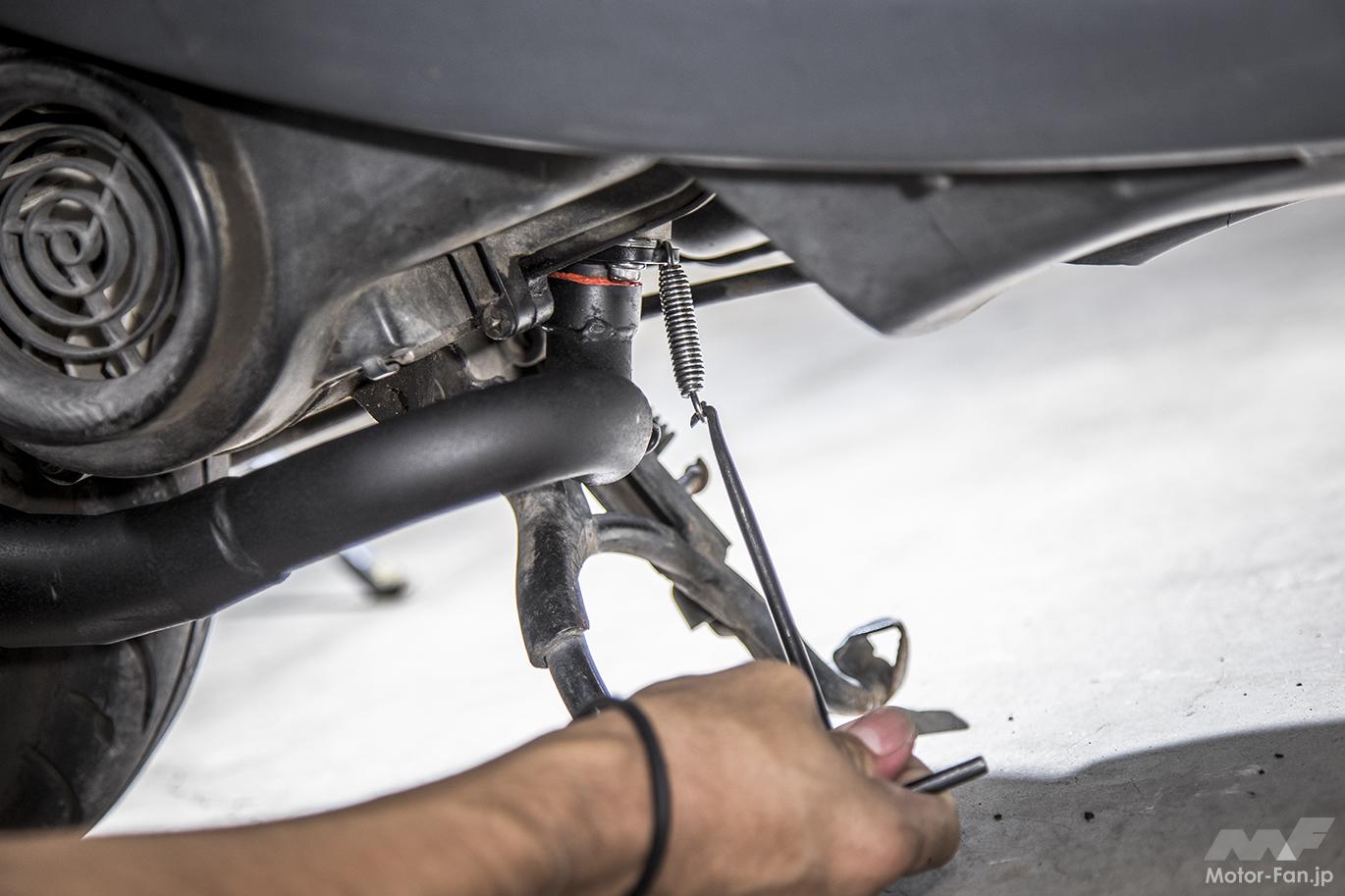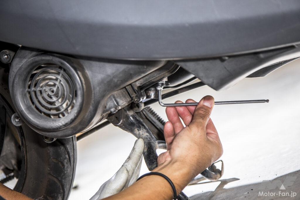 マフラー変更に伴い、キャブレターもセッティングする必要あり。キャブレターにアクセスしやすいようにシートやメットインボックスを取り外す。
