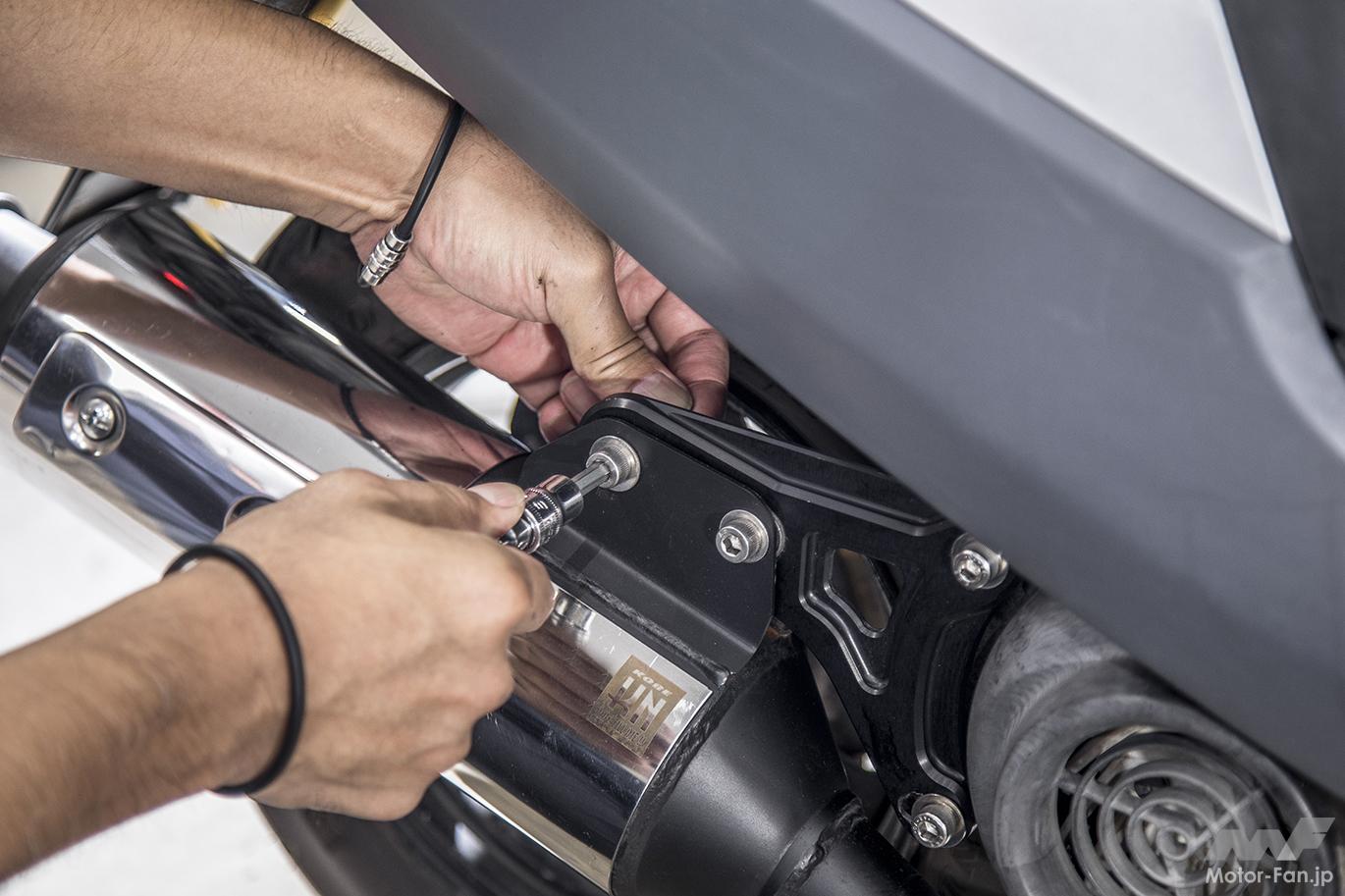スポマフ化&セッティングを完了した車両で、今度はシャーシダイナモに掛けて後輪出力を計測。詳細は次回お届けしますが、110ccクラスの4ストスクーターと同等以上の後輪出力を得ることができました!
