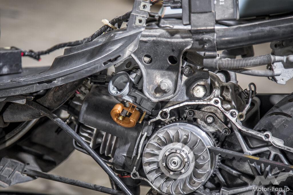 スクーターのチューニングはパワーが出てくると、扱いやすさとのバランスをとるのがだんだん難しくなってくる。バンバンウィリーするだけ、最高速を伸ばすだけ、は簡単だけど、どのエンジン回転域でもアクセルが付いてくるようにうまく纏めることこそ、スクーターチューニングの醍醐味なのである。