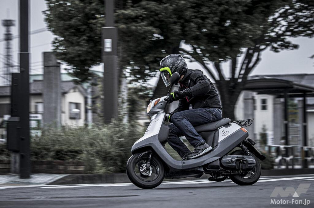 「2ストらしい元気の良さを発揮するのは、メーター読みで30km/hの手前から。パイーンッという乾いた排気音とともに、まるでスイッチが切り替わったかのように鋭く加速する。軽量コンパクトな車体と相まって、体感的な加速フィールは現行の4スト110ccスクーターと同等かそれ以上だ。なお、30km/h以下での加速力はそれほどではなく、マフラーの音量も含めて信号の多い街中ではほんの少しストレスを感じるかも。とはいえ、それらも2ストの小排気量スクーターらしさであり、久しぶりにノスタルジックな気分になった」(大屋雄一)