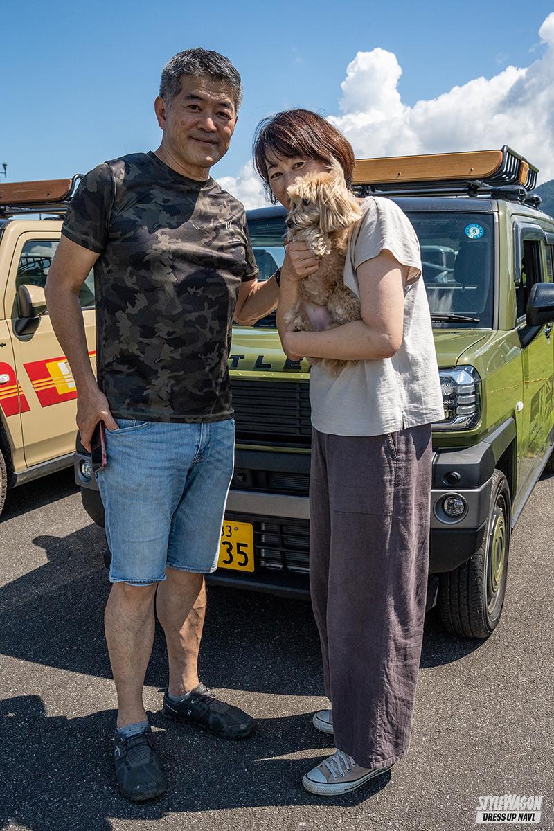 ミニバンに乗っていて、家族みんなで乗る機会が減りサイズダウンを検討。ジムニーは気になったけど、2枚ドアは……、そこで浮上したのがタフト。このダムドの『リトルD』のタフトだった! ドアグリップをブラック化することで外装を引き締めるなど、見た目のカスタムも積極的。今までカスタムをしてこなかったが、ハマってしまうかも!?