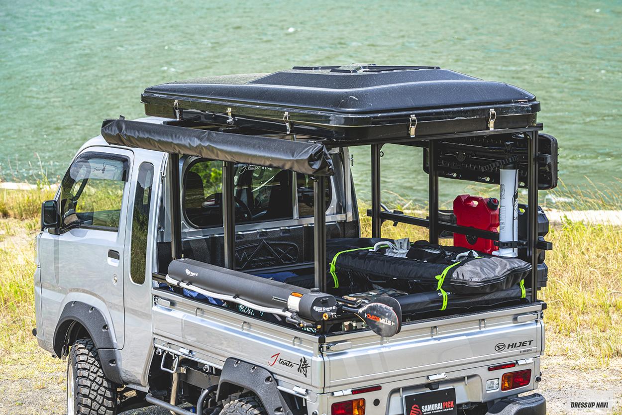 ルーフテント ただいまウイングサーフィンに夢中です! コンパクトで小回りが効くダイハツ・ハイゼットジャンボならどこにでも行ける!【頼もしい相棒=愛車と過ごす、楽しい休日】【写真・5枚目】 但東自動車 https://www.tantojidosha.jp 岩出公直さん DAIHATSU HIJET TRUCK JUMBO この画像の記事を読む