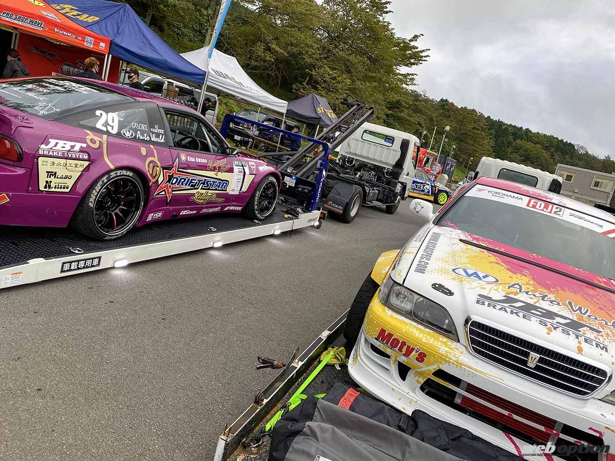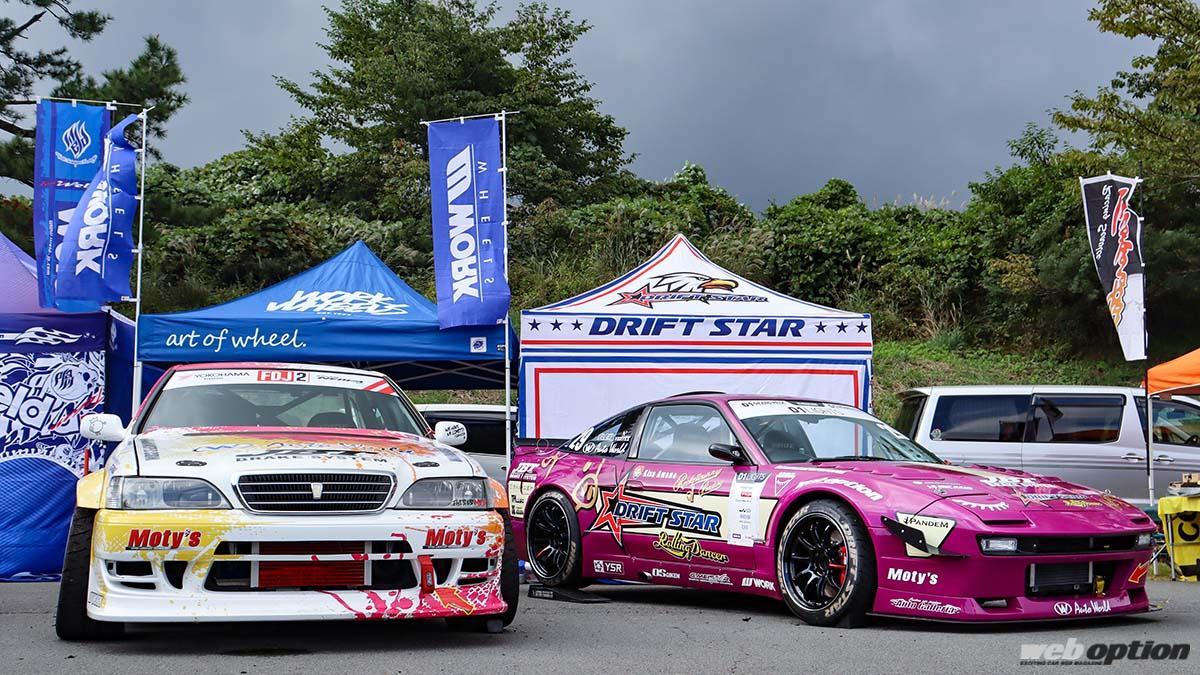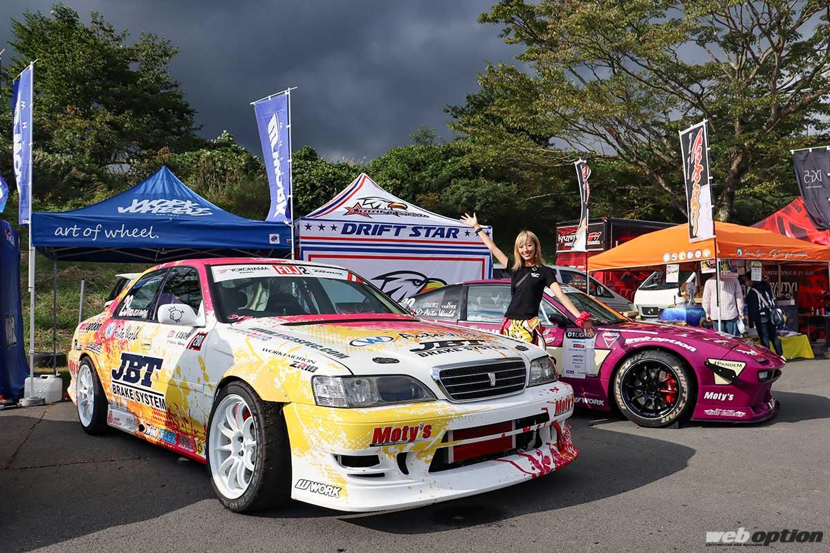 私はWORK Wheelsブースからゲストドライバーとして参加させていただきました。大会参戦車両であるキサエイティことPandem 180SX(1JZ搭載)と、ももクレちゃんことJZX100クレスタ(2JZ搭載)の2台も一緒! 本当にありがとうございました!