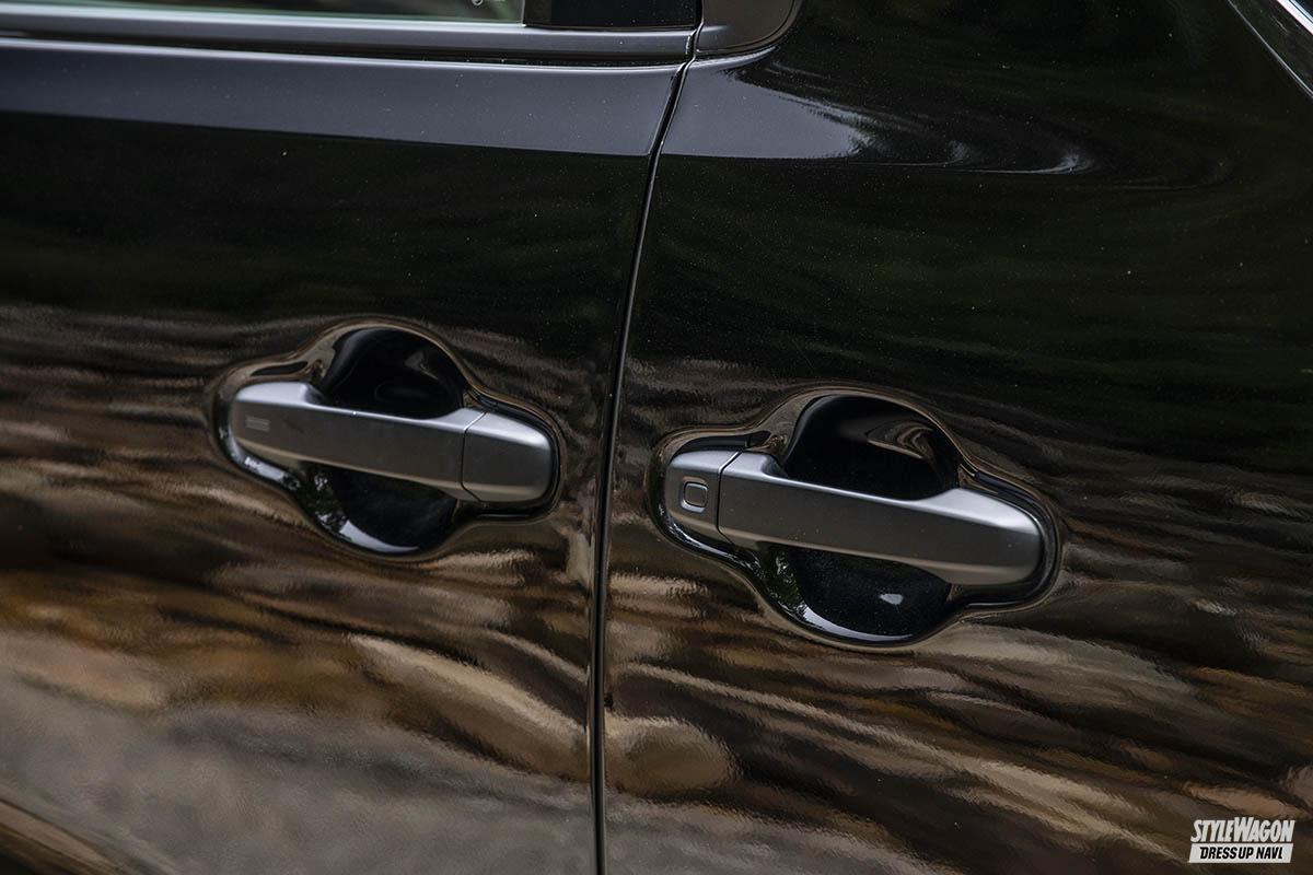 さらにデモカーではオフ系独特のワイルド感を底上げするために、各部の純正メッキをマットブラックへと変更。ドアノブやウインドウガーニッシュといった細部までを黒で引き締めることで、力強さが演出されている。