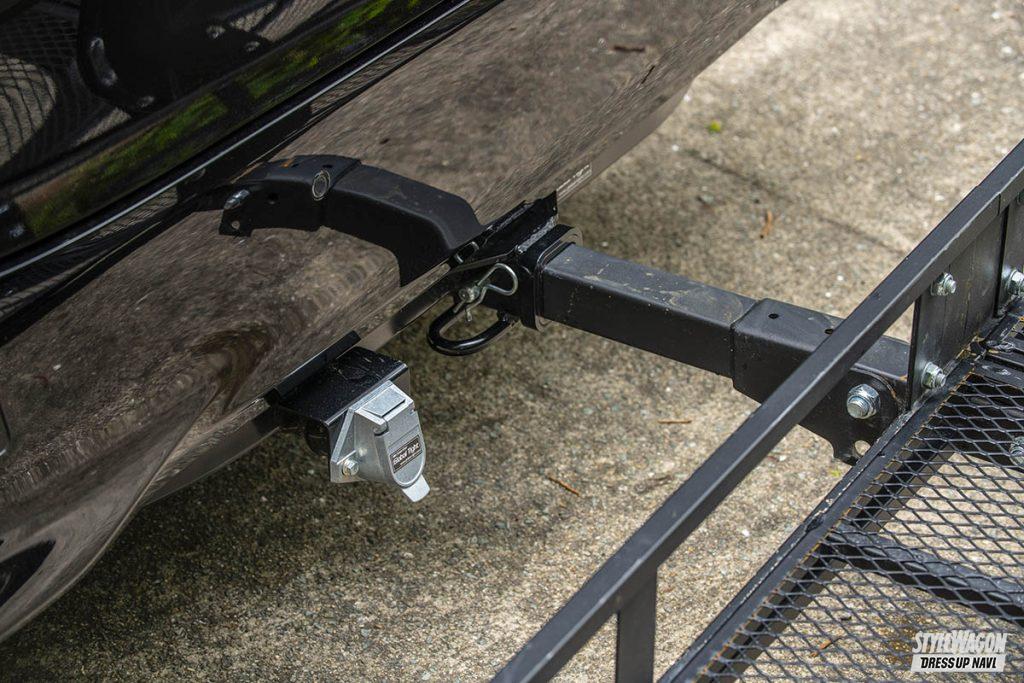 とどめはリアのグローバルタイト製ヒッチメンバーとヒッチカーゴというアウトドアギア。ワイルドなクロームデリートにオフ系の足元、そしてカーゴという明確なオフ要素。これならキャンプ場でも、映えまくりだ。
