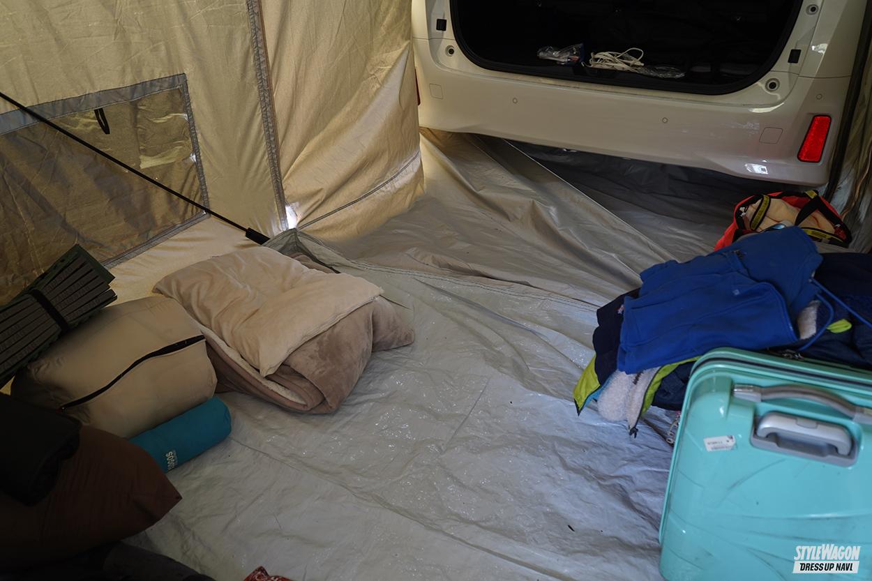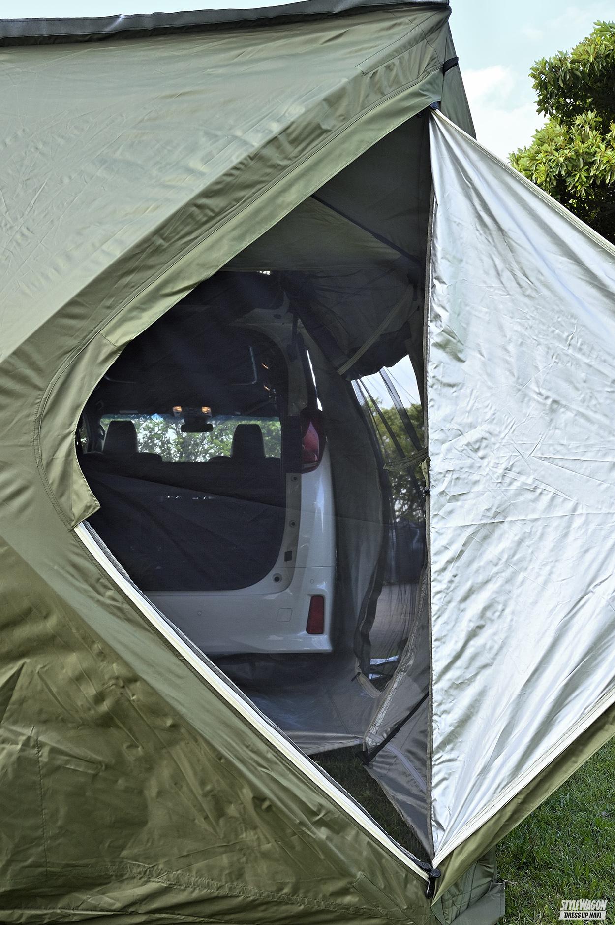 スタイルワゴンでも何度か紹介してきたアルパインスタイルのバックドア拡張型テントが、遂に価格も決定し、11月初旬にデリバリーを開始する。アルヴェルのバックドアを開けた状態で、筒状の生地をバックドアに被せ、その後方にリビングスペースを連結する独特な形状。タープというよりは、ファミリーキャンプクラスの大型テント的な意味合いが強いが、それゆえスペースが広く、また、メッシュ窓も大開口なので、開放的。テントを別に設営するならば、カーサイドタープ的な使い方も十分にこなせる。アルパインスタイルでは30系アルヴェルに向けたベッドキットもラインアップ。バックドア拡張型テント+ベッドキットで、悪天候でも広々くつろげるリビング付きの車中泊を楽しむこともできる。アルヴェル乗りはぜひ!