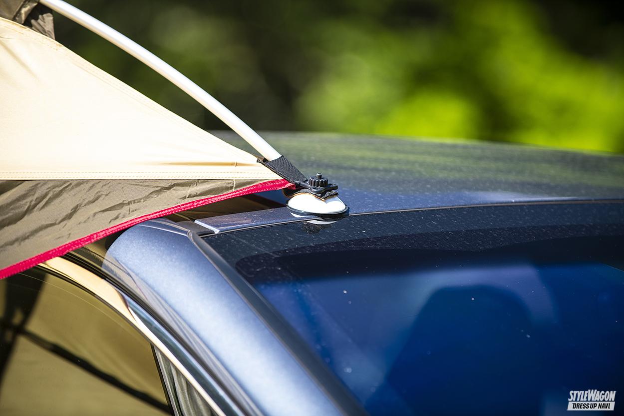このオガワのカーサイドタープは、スズキ・ハスラーや三菱・アウトランダーPHEVの純正オプションとしても販売されていて、汎用性も折り紙付き。私も2年近く使っていて、様々な車種で使ってみたけど使いづらい〜ということはなく。クルマが変わっても使えるのは嬉しい限りです。