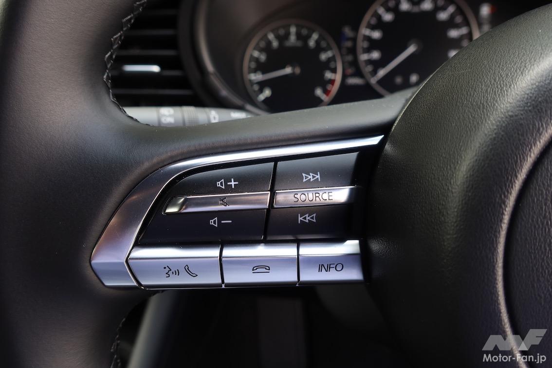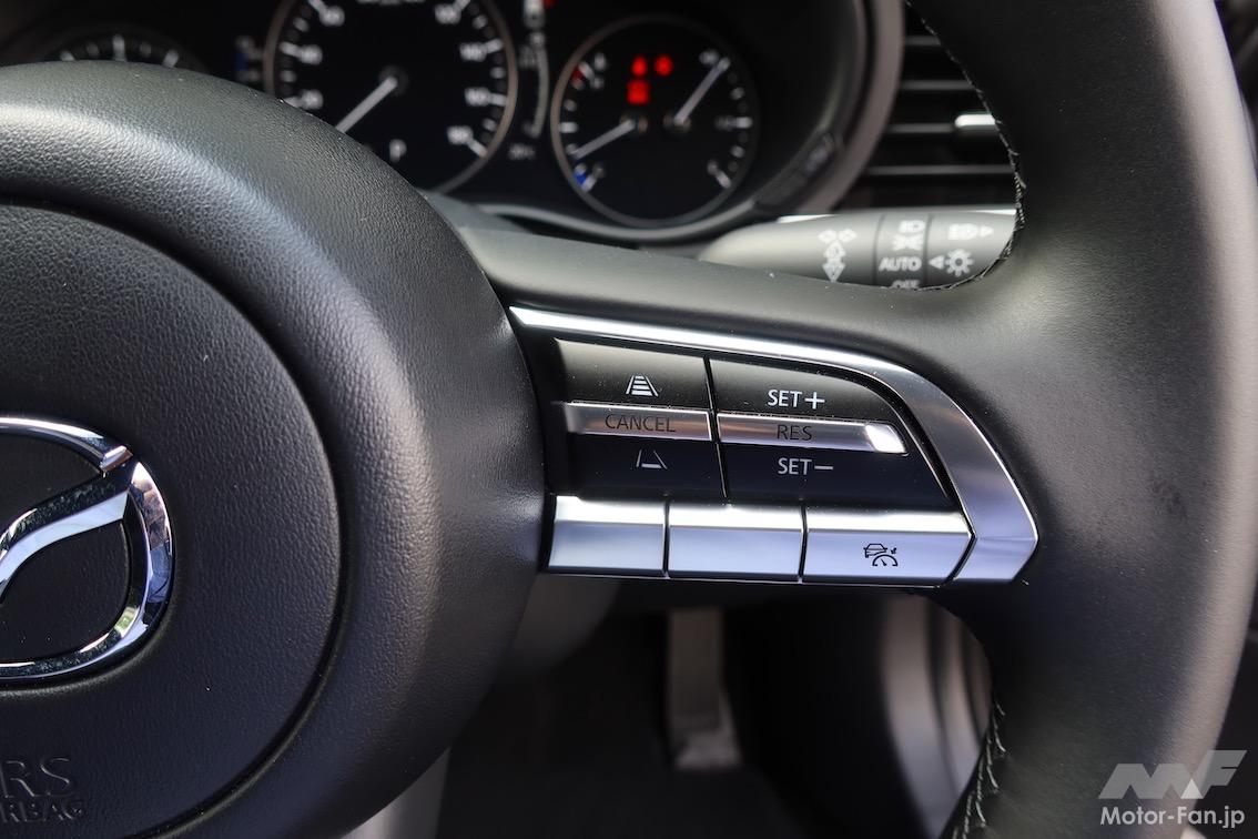 ブラックトーンエディションとの対比でいえば、クルージング&トラフィック・サポート(CTS:追従走行時のステアリングアシスト機能)は付かないが、先行車との車間距離を一定に保ちながら追従走行できるマツダ・レーダー・クルーズ・コントロール(MRCC)は搭載しており、同種の機能に慣れ親しんでいる人にとっては朗報だろう。装備を簡略化した機種ではエアコンをオートからマニュアルに変更する例が散見されるが、スマートエディションの場合、エアコンはフルオートが備わっており、この面でも「いくら選びやすい価格だからといって……」と、悩ましい(所有してみればみすぼらしい)思いをしなくて済む。